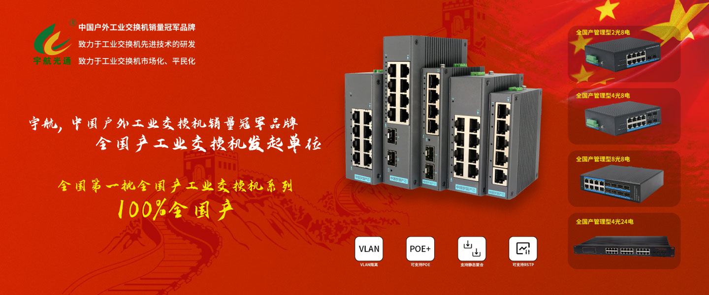 深圳市宇航光通科技有限公司總部位于深圳,是一家以工業以太網產品自主研發,生產,銷售和服務為主營業務的國家高新技術企業、深圳高新技術企業,為客戶提供高性價比的工業以太網產品和解決方案,在工業以太網產品領域獲得了多項創新型的技術成果,連續多年中國十大安防品牌,連續三年中國信創產業500強,中國信創產業獨角獸100強,中國信創產業領軍企業100強,工信部、公安部等智慧城市首推品牌,宇航光通專注于工業交換機品牌市場和中大型客戶OEM/ODM市場。產品包括工業級收發器、工業級交換機、二層工業級PoE交換機、二層非管理型工業級交換機、二層工業級管理型交換機、三層工業級萬兆交換機等。宇航光通致力于打破工業交換機西方巨頭的技術壟斷,致力于工業交換機市場化、平民化。