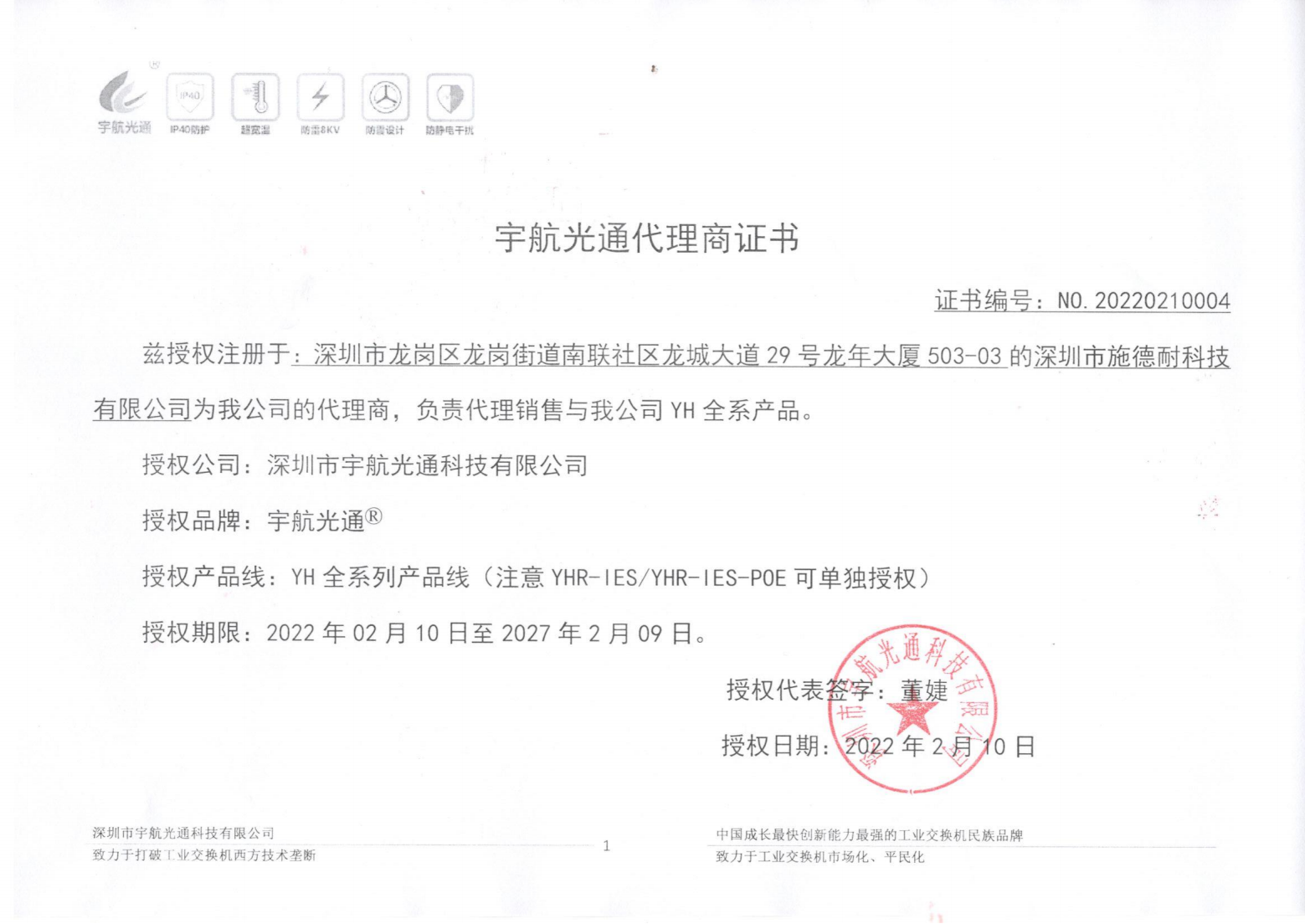 宇航代理商授權書