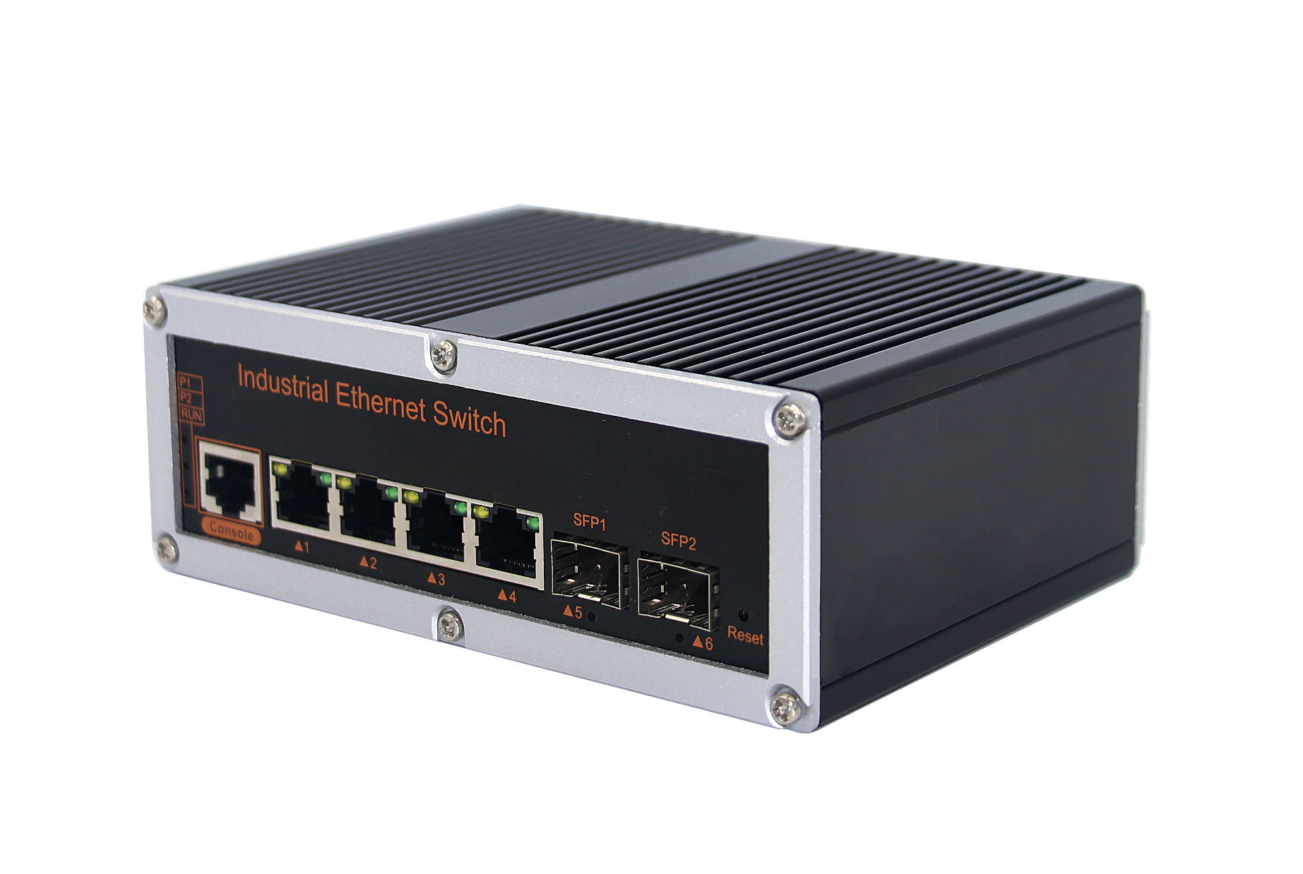 網管型千兆2光4電工業級以太網交換機,產品符合FCC、CE、ROHS標準。支持2個千兆光口和4個千兆電口,支持一路console口;支持工業現場所需的以太網二層協議,保證通信網絡的穩定性;該系列交換機采用低功耗、無風扇設計,確保無噪聲干擾,同時支持-40~85℃工作溫度和良好的EMC電磁兼容性能,保證在惡劣的工業環境中保持穩定的工作,為工廠自動化,智能交通,視頻監控等工業應用領域組建快速穩定的網絡終端接入網絡提供安全可靠的解決方案。護等級的外殼及 LED 指示燈,使之成為一個即插即用的工業級設備,為用戶的以太網設備聯網提供可靠、便捷的解決方案。