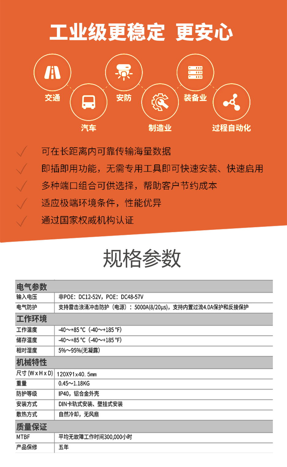 產品名稱    工業級POE(NT品牌)百兆非網管2光4電