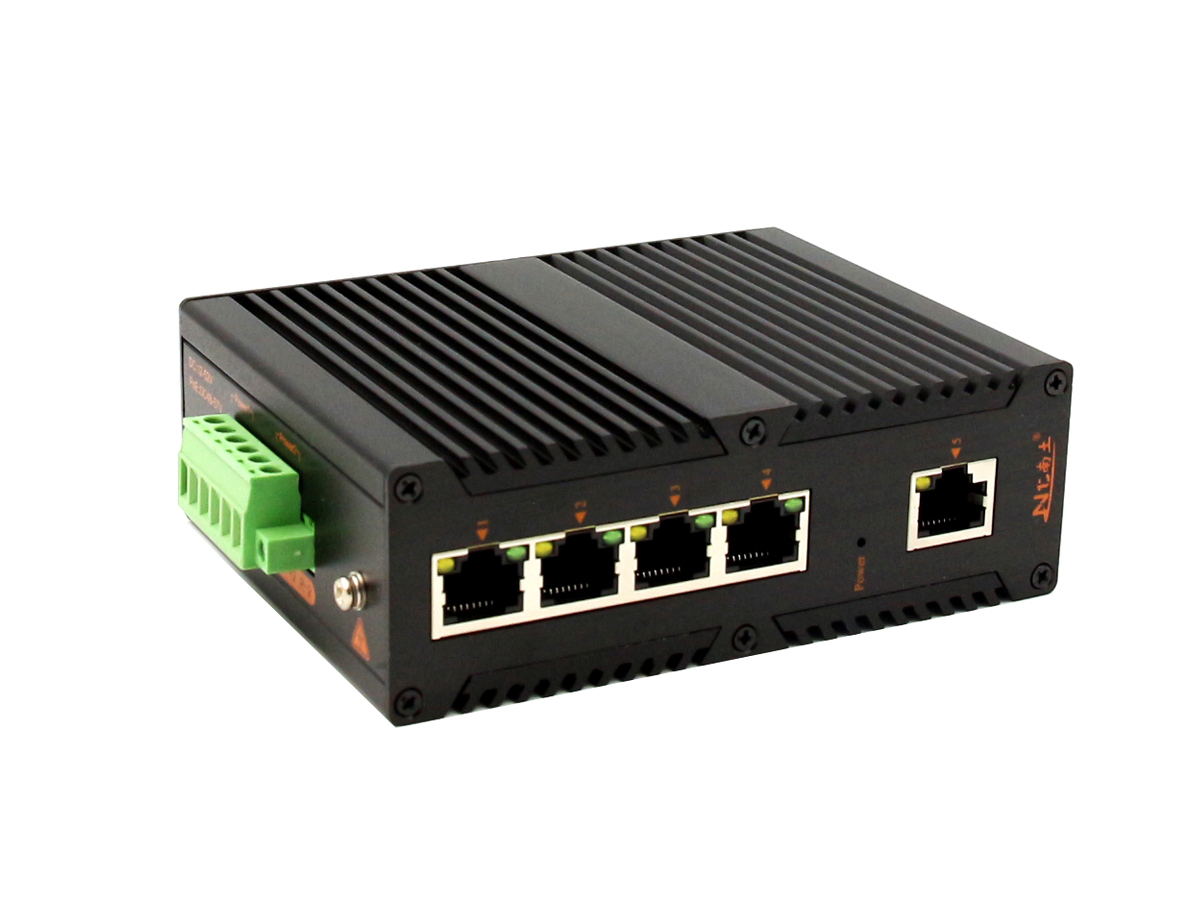 工業級(NT品牌)千兆非網管5口交換機,導軌式-DC12~52V供電-寬溫(-40℃-85℃)。默認不含AC電源適配器。