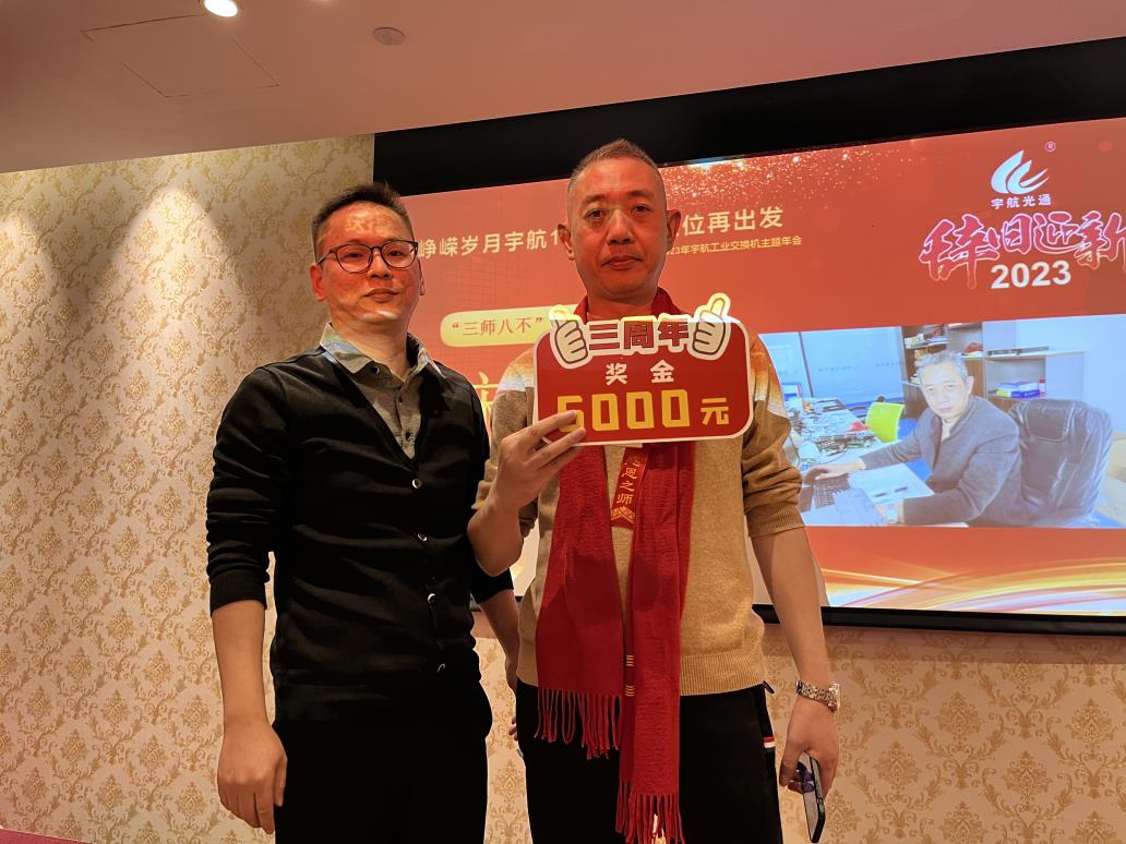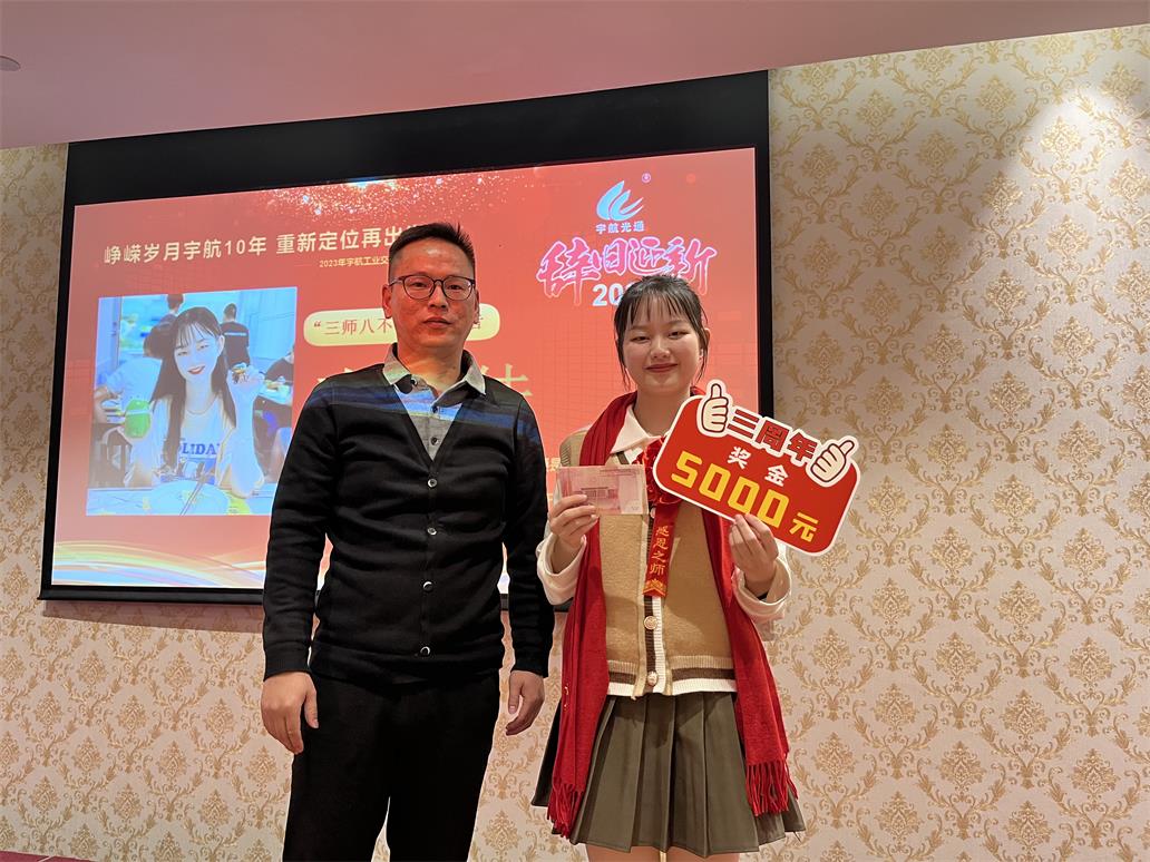 余俊云—入職宇航五周年獎,獎勵現(xiàn)金一萬元。手握重兵,穩(wěn)如泰山,業(yè)績No.1,效率No.1,可甜可咸,人稱宇航工業(yè)交換機最佳百度百科。