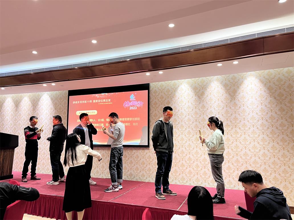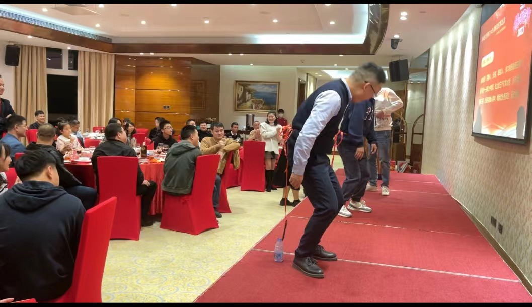 頒獎結(jié)束,當然要有小游戲來熱熱場子,調(diào)動氣氛。現(xiàn)場準備了2個游戲,蒙眼吃香蕉和蜻蜓點水,大家都踴躍參加小游戲,兩兩搭檔或者三人一組,配合默契,親密無間,既拉近了彼此的距離,也意識到了團隊合作的重要性。游戲過程中,大家都感到歡樂、放松,同時現(xiàn)場氣氛也異常活躍,臺上的參賽者搞笑的動作和不知所措的小手惹得大家捧腹大笑,時常有人吹起口哨,喊起口號,為參賽者加油助威。游戲結(jié)束之后,獲勝者還獲得紅包一個。