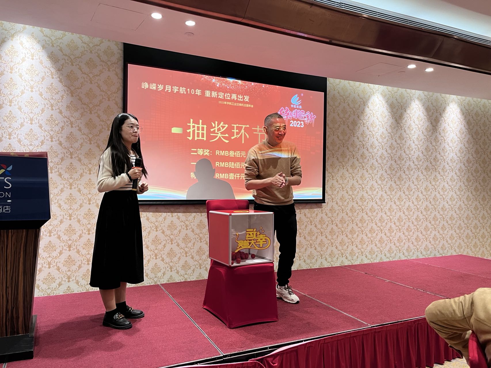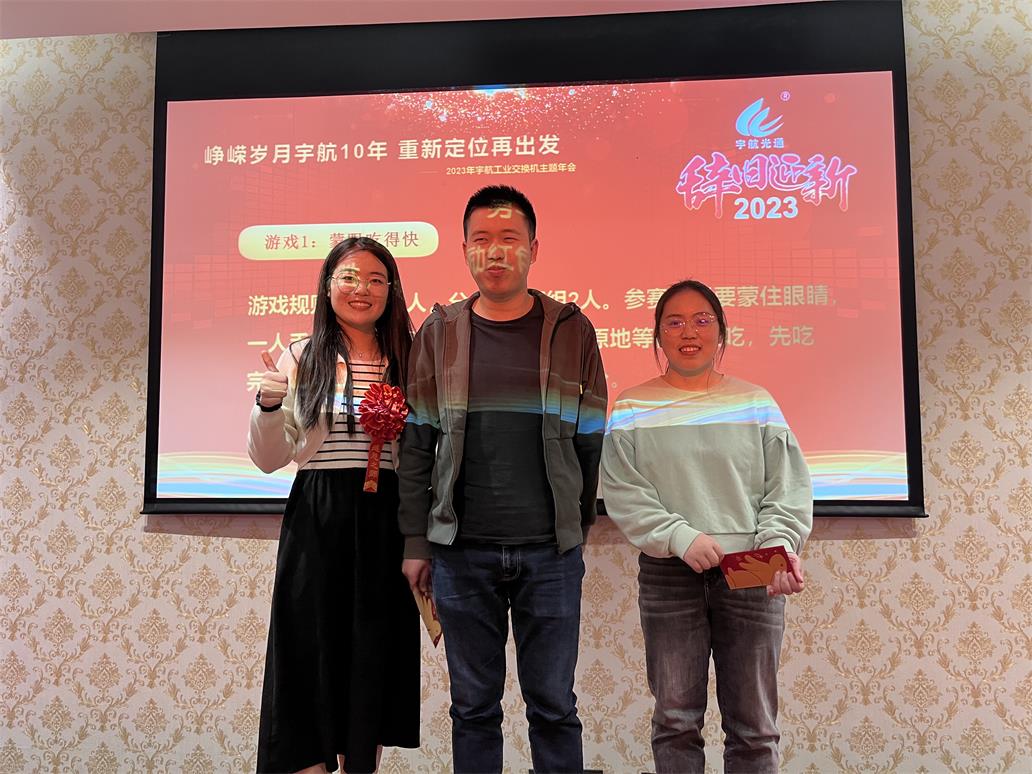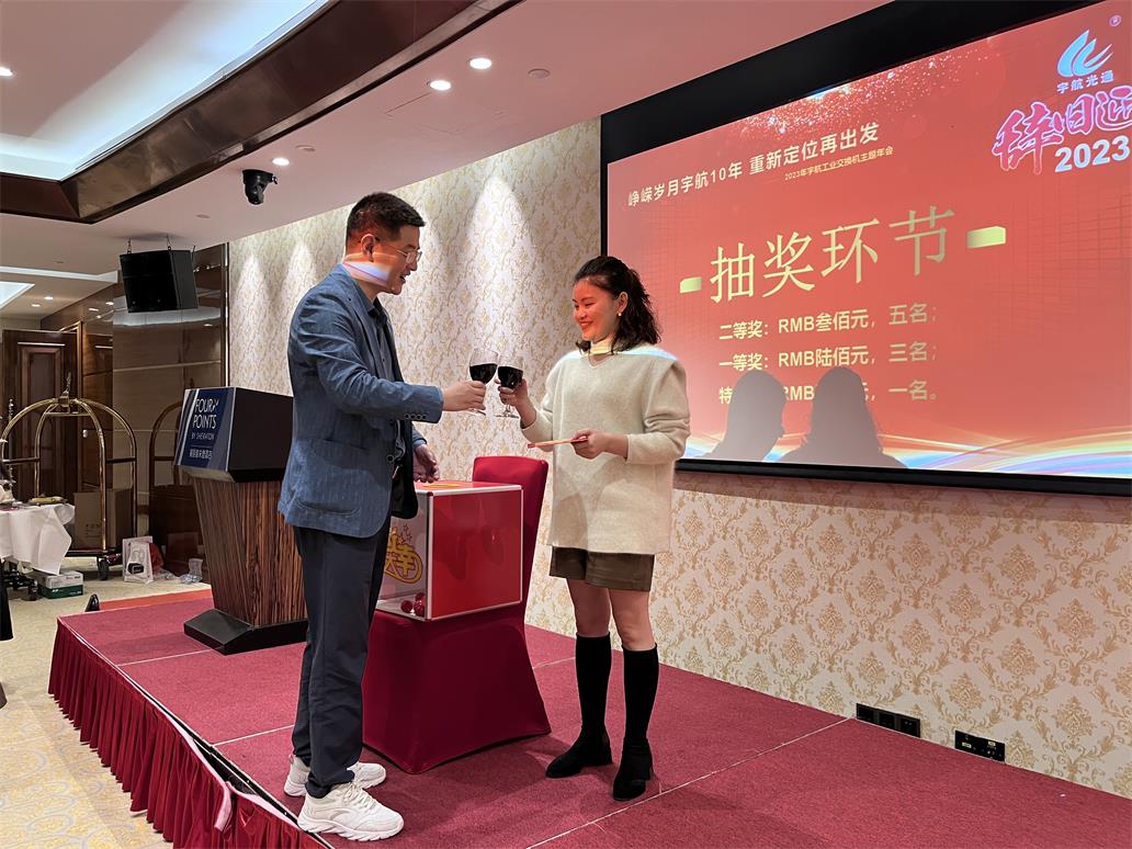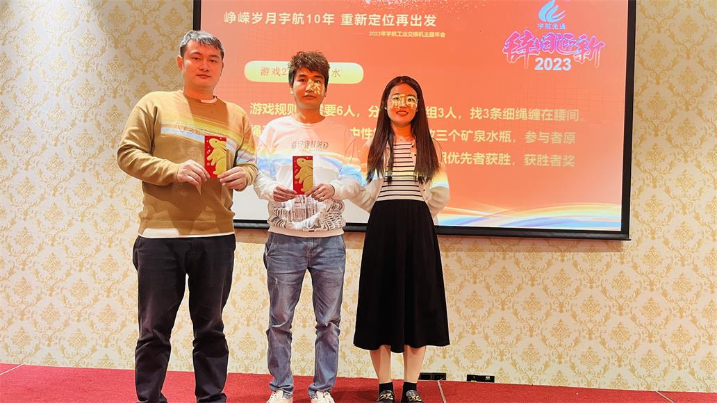 7日17:00整,2023宇航工業(yè)交換機主題年會正式開始,時長四個小時,整個過程有夢想,有感動,有感恩,有頒獎,有游戲,有抽獎,整個現(xiàn)場熱火朝天,掌聲雷動。