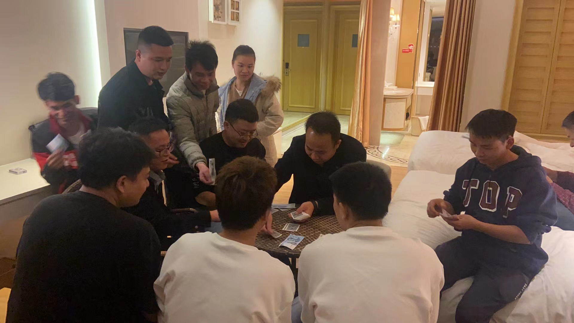 晚宴后,大家摸著圓圓的肚皮,邁著自己的大長腿,三五成群非常默契的一起沖向老板的房間,此時大家都知道,老板又要“送錢”啦,名義上是玩棋牌,實際上是變相發(fā)錢,只見老板拿出背包,裝了數(shù)不清的錢,見人就給一沓,隨即進行棋牌游戲,不管牌的大小,扛不住老板明目張膽的放水啊,數(shù)次回合下來,只見大家手里人民幣紅的綠的一大把,而老板兩手空空。結(jié)束后,大家一起聊天,看夜景,絲毫感覺不到困意,有聊不完的夢想,聊不完的感動,最后大家在依依不舍中結(jié)束了一整天的歡樂時光。