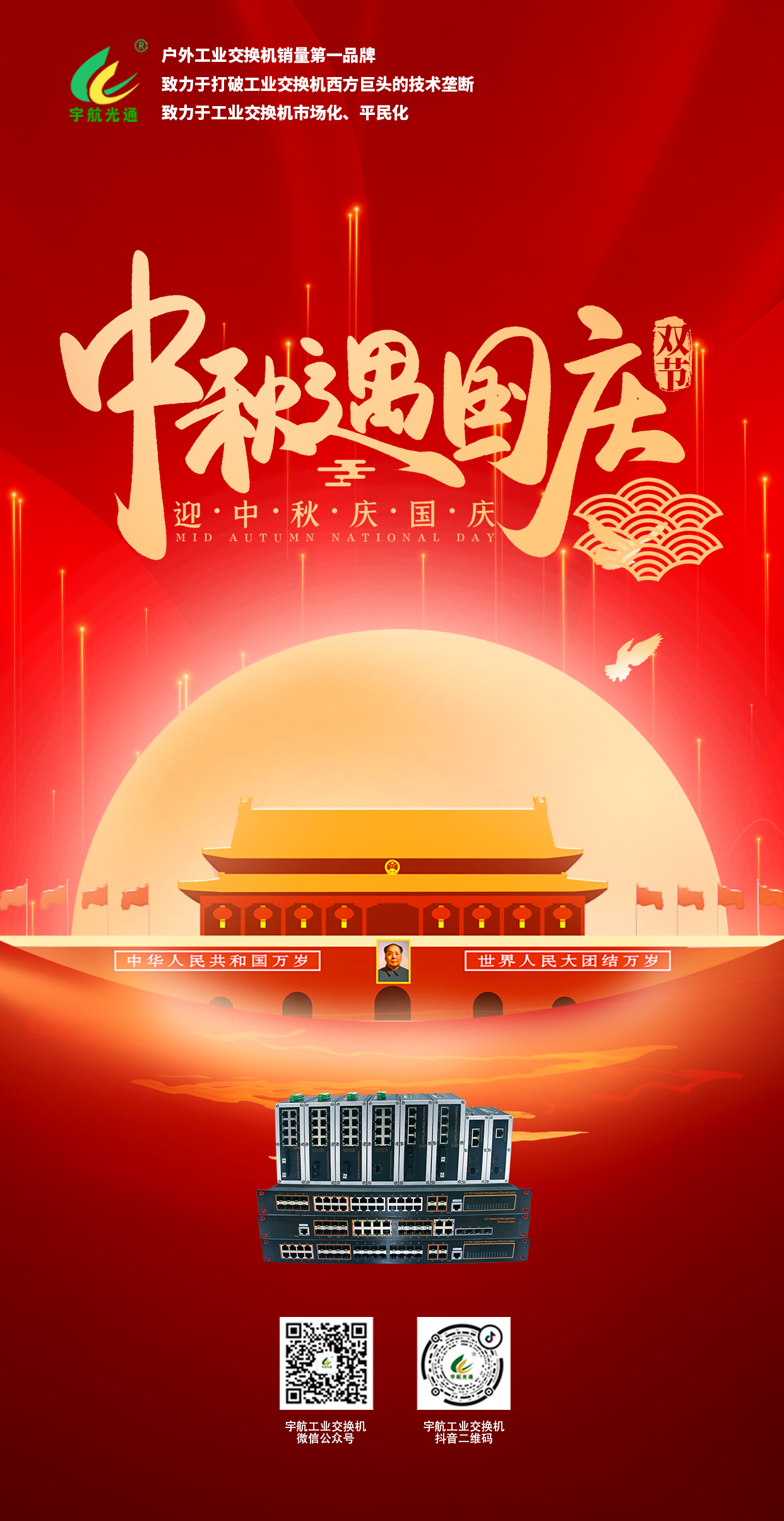 喜迎中秋,歡度國慶,宇航工業(yè)交換機(jī)祝大家節(jié)日快樂!