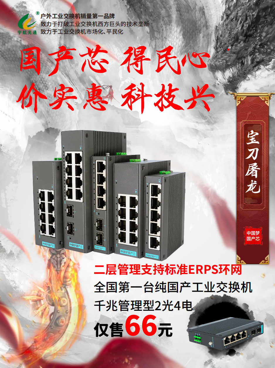 宇航致力于打破西方技術壟斷,致力于工業交換機市場化、平民化。宇航堅定不移的貫徹科技強國的理念,在這個全國產管理型的工業級交換機量產之際,我們帶著普及國產芯片的責任和義務,堅持讓國產實惠,讓國產普及,續寫國產芯愛國心。