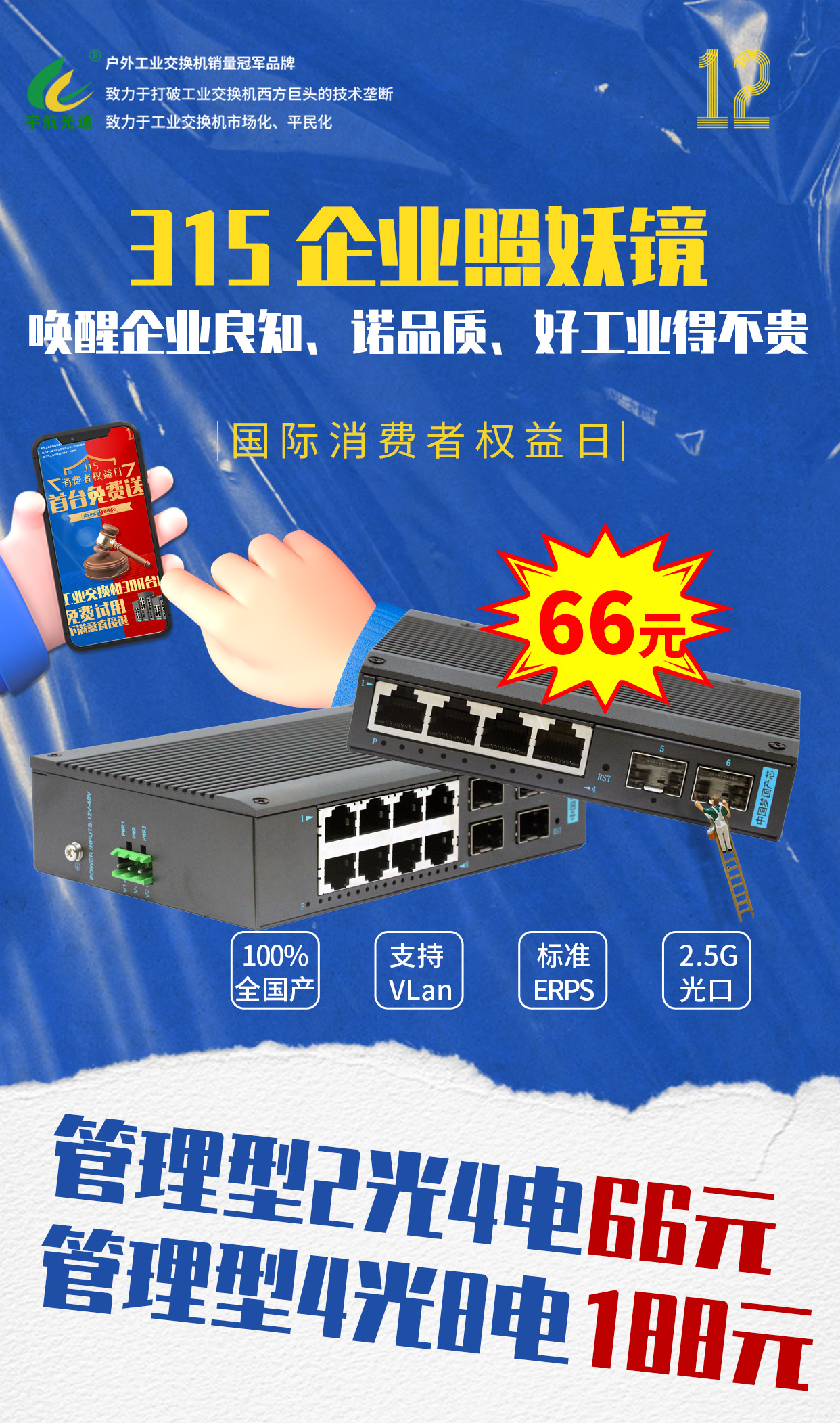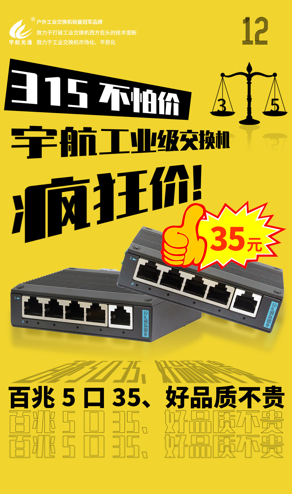 各位親們,您是否還在為尋找一款高性價比的工業(yè)級交換機而煩惱?您是否還在為高昂的價格而猶豫不決?今天,宇航工業(yè)交換機315狂歡盛典正式拉開帷幕,讓您一機在手,暢享高品質(zhì)的網(wǎng)絡設備,品質(zhì)與實惠雙豐收!