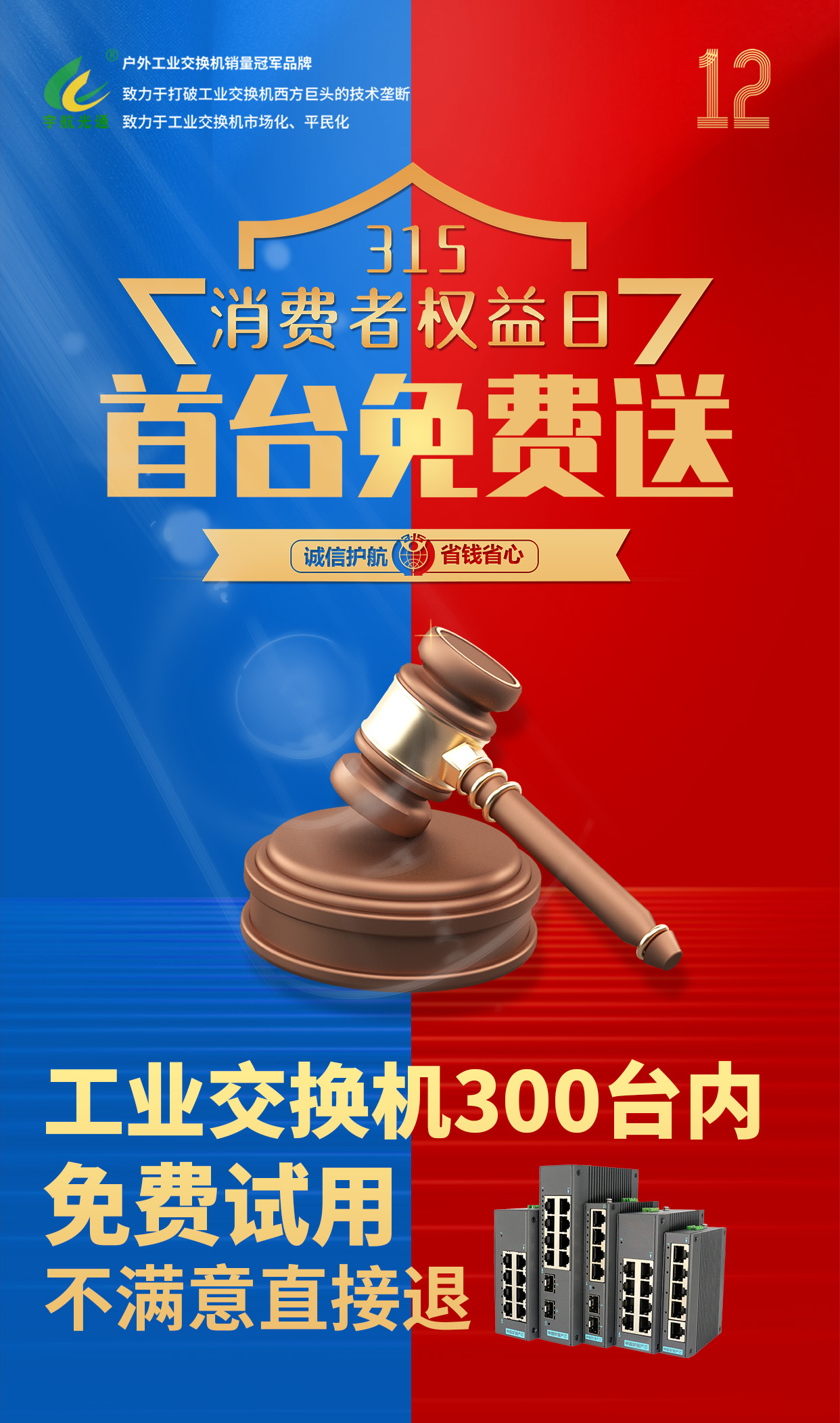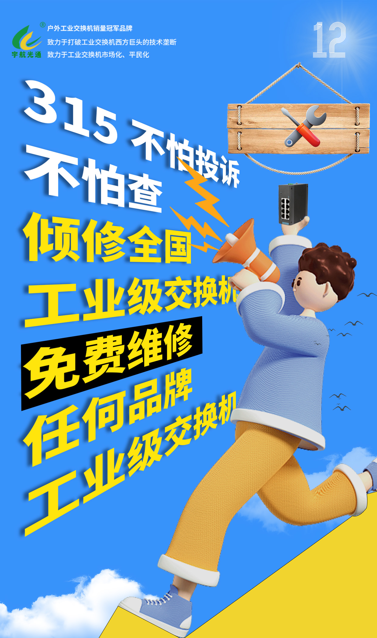 宇航工業(yè)交換機不僅提供為客戶優(yōu)質(zhì)的產(chǎn)品和服務,更是一個有良知、有責任感的企業(yè)。宇航始終堅持誠信經(jīng)營,以消費者的利益為先。在315這個特殊的日子里,宇航更是敢于接受消費者的監(jiān)督和投訴,如果有任何問題或疑慮,請隨時聯(lián)系宇航,宇航將竭誠為您解答和處理。