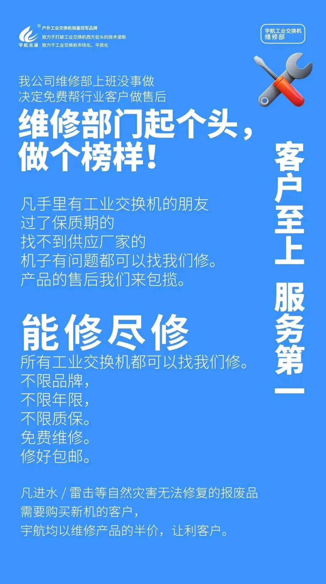 未來,宇航工業交換機作為戶外工業交換機銷量冠軍品牌,將繼續秉承客戶至上、服務第一的理念,不斷創新和進取,為客戶提供更加優質的產品和服務,為行業的繁榮發展貢獻更多的力量。