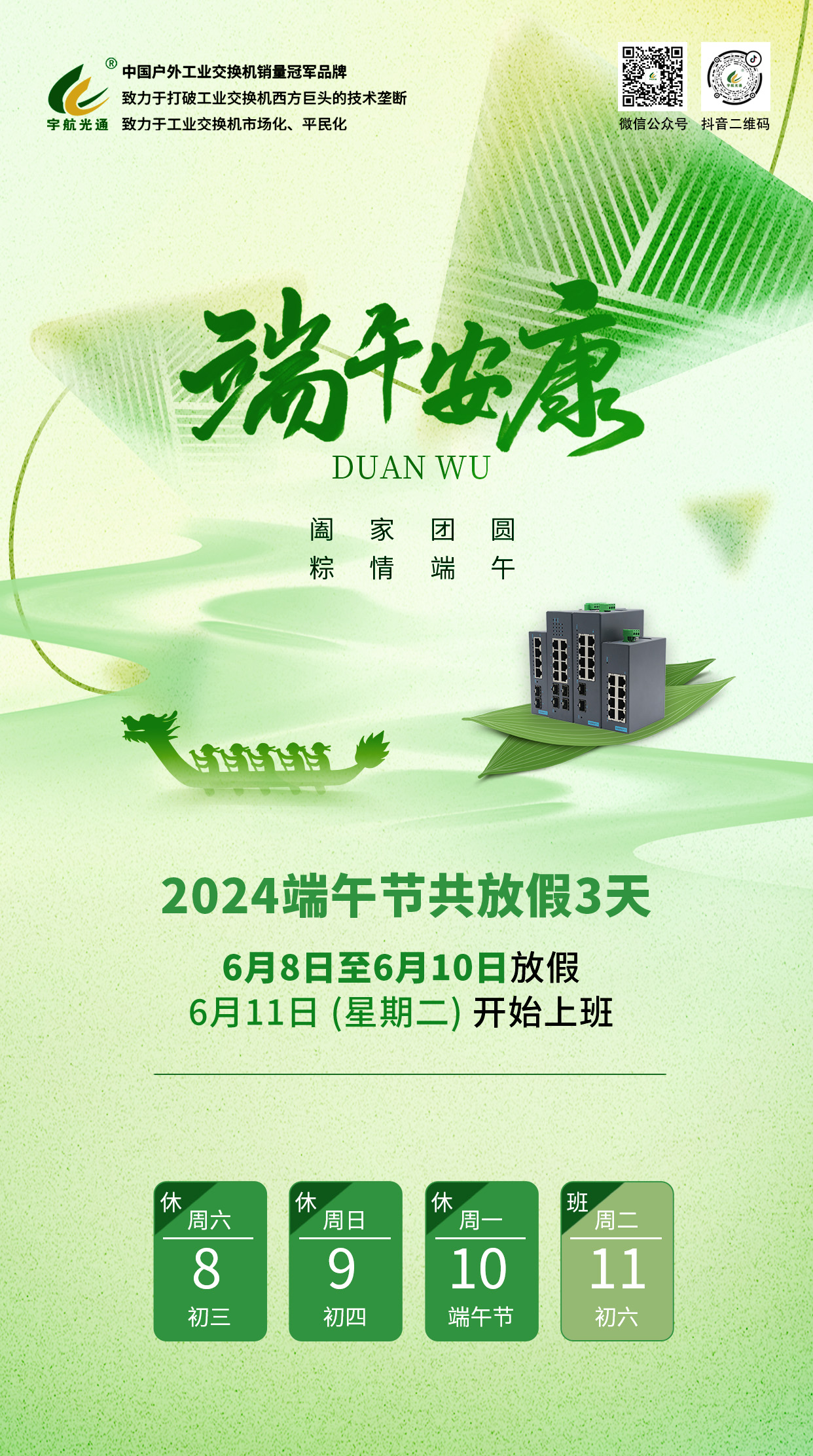 根據國家法定假期的規定,宇航工業交換機2024年端午節放假安排通知如下: