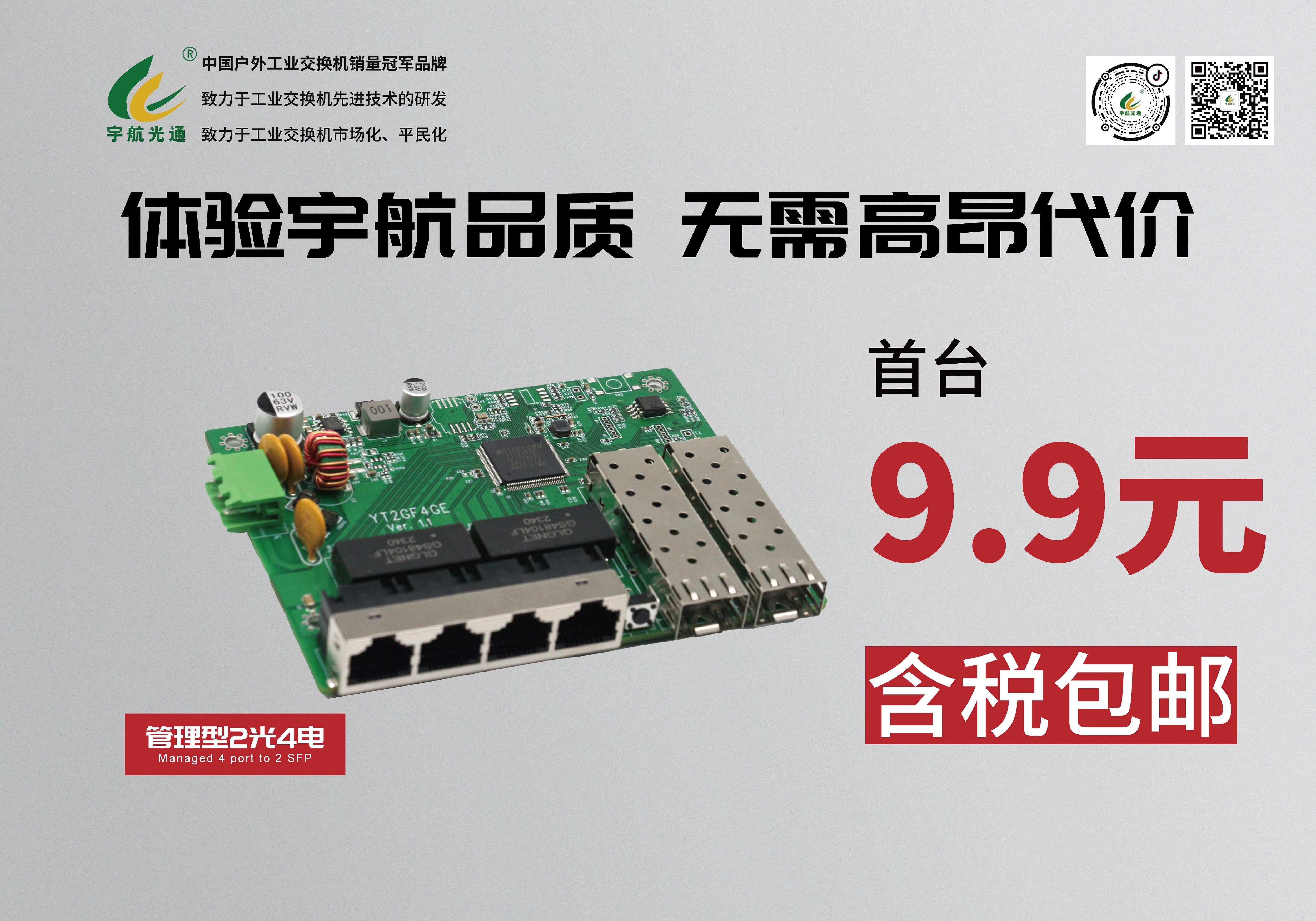 展會上,宇航推出管理型“2光4電”工業交換機僅需九塊九包郵的感恩回饋活動,宇航成為市場上第一家推出如此超值工業交換機的公司。我們始終致力于為客戶提供高性能、高品質的產品,同時堅持性價比至上的原則。本次推出九塊九包郵活動,旨在讓更多用戶能夠體驗到宇航工業的卓越品質,感受我們的技術創新和誠意。