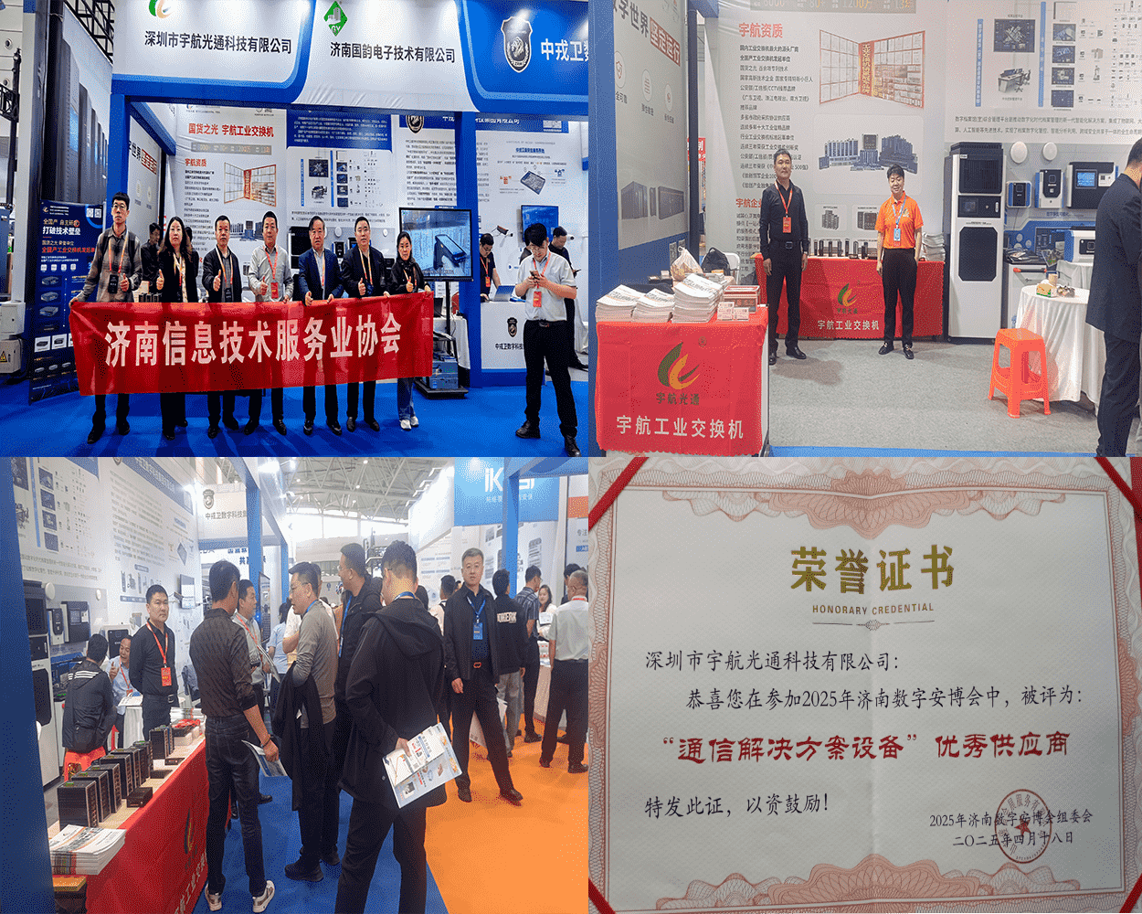 此次系列展會中,宇航工業(yè)交換機展示了最新一代國產(chǎn)化工業(yè)通信解決方案,吸引眾多行業(yè)用戶駐足交流。各地參展觀眾對宇航自主研發(fā)的全系列工業(yè)級交換設(shè)備給予高度評價,尤其對宇航工業(yè)交換機在惡劣環(huán)境下的穩(wěn)定性能和信創(chuàng)領(lǐng)域的技術(shù)突破表示贊賞。在濟南數(shù)字安防產(chǎn)業(yè)博覽會上,宇航憑借其自主創(chuàng)新的國產(chǎn)通信技術(shù)體系,榮膺大會"通信解決方案設(shè)備優(yōu)秀供應(yīng)商"稱號。