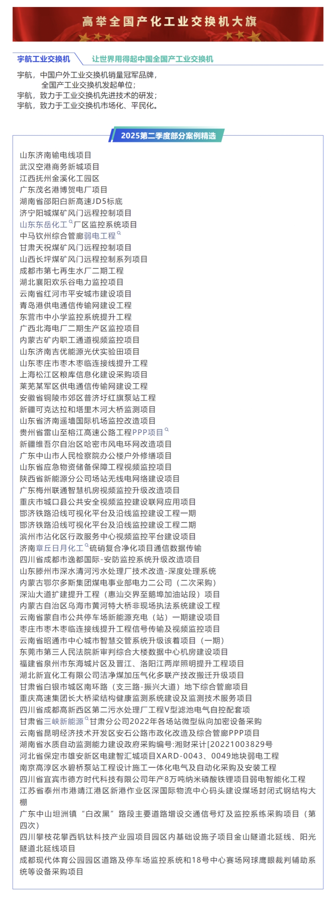 宇航工業(yè)交換機(jī)第二季度案例精選&高速路監(jiān)控解決方案分享