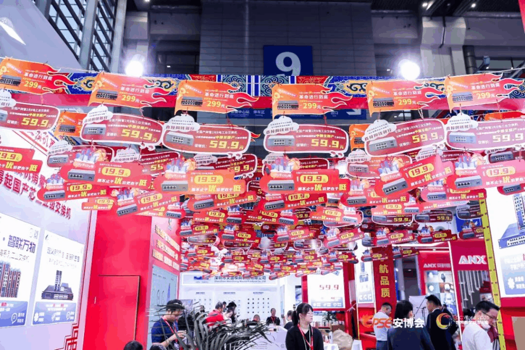 本屆CPSE安博會,宇航展臺憑借獨具特色的“中國紅”主題設計,結合全國產工業交換機爆款特賣,迅速成為全場焦點,人氣與話題度持續攀升。展會期間,宇航重磅發布了全國首臺二層三層全國產核心工業交換機,并同步推出多款創下“歷史低價”的全國產系列產品,一舉引爆現場熱度?,F場直接開啟的特價售賣環節,更吸引大量專業觀眾前來咨詢、體驗與采購,展臺一度人流如織,氣氛熱烈。