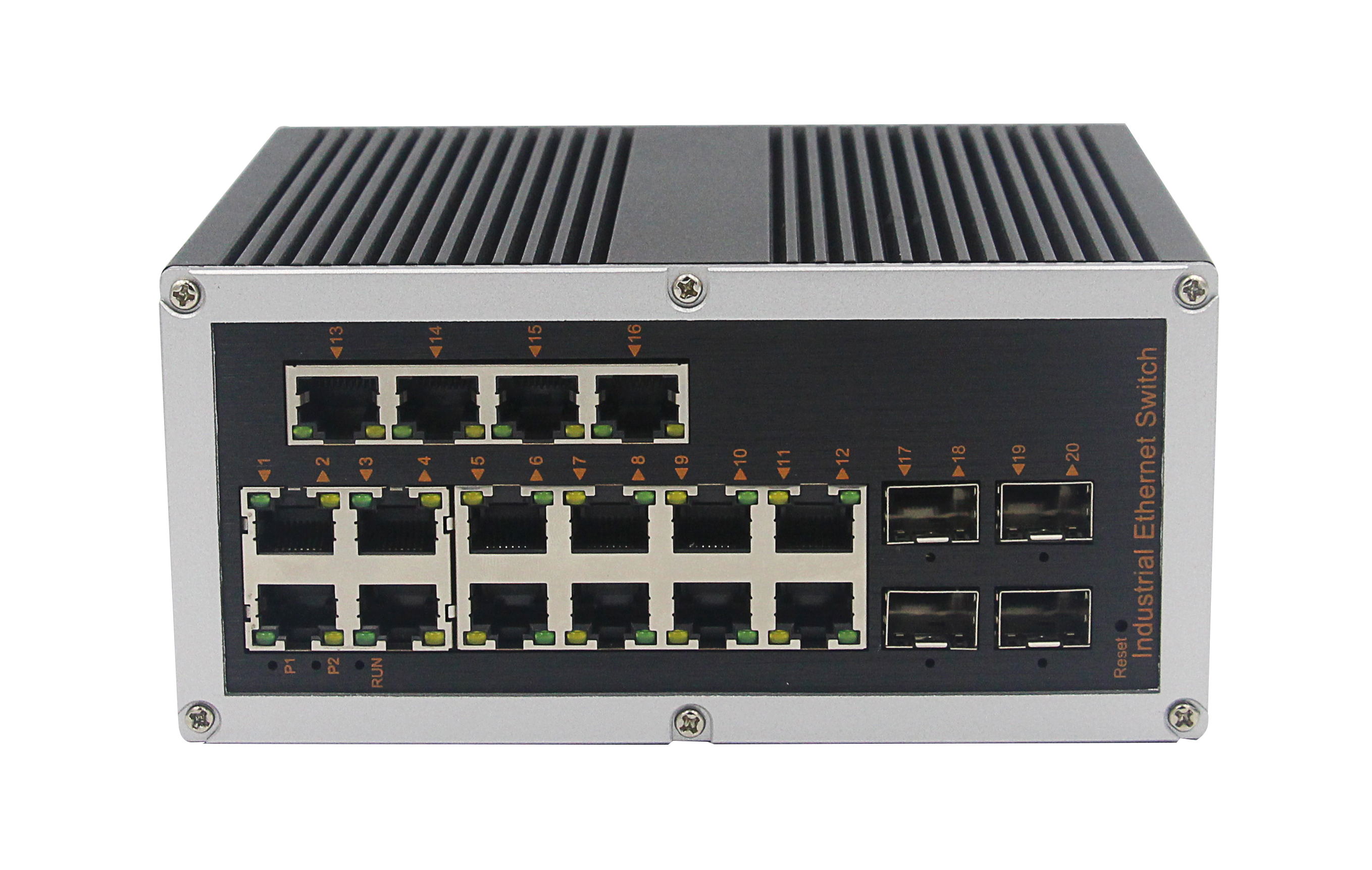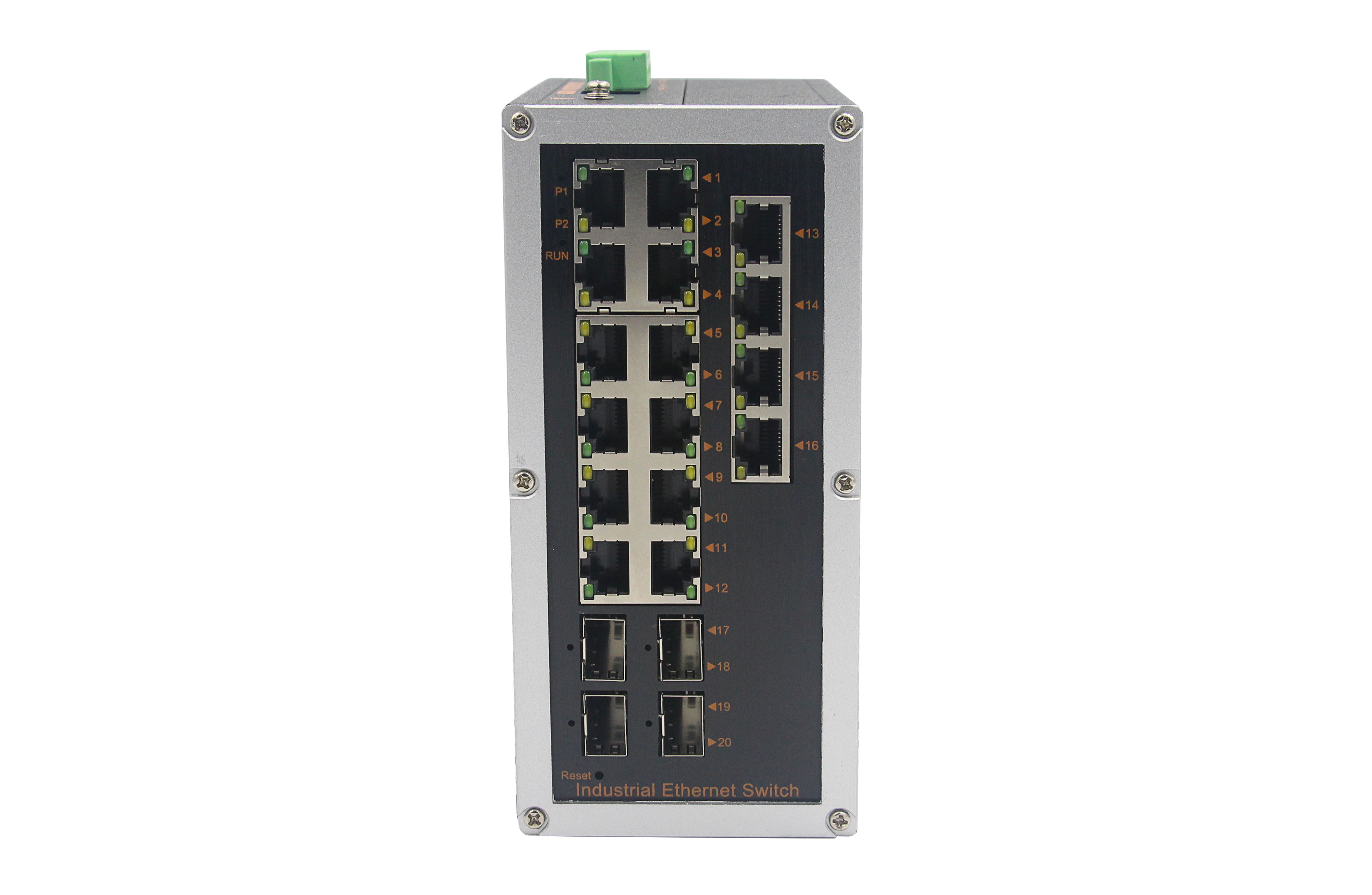 首頁產品系列行業標準&渠道增值產品鋁合金系列導軌式鋁合金弱三層管理型工業交換機網管工業級 千兆4光16電-SFP