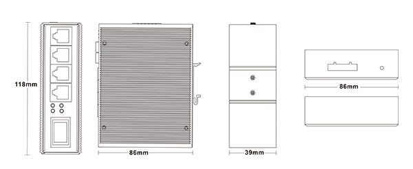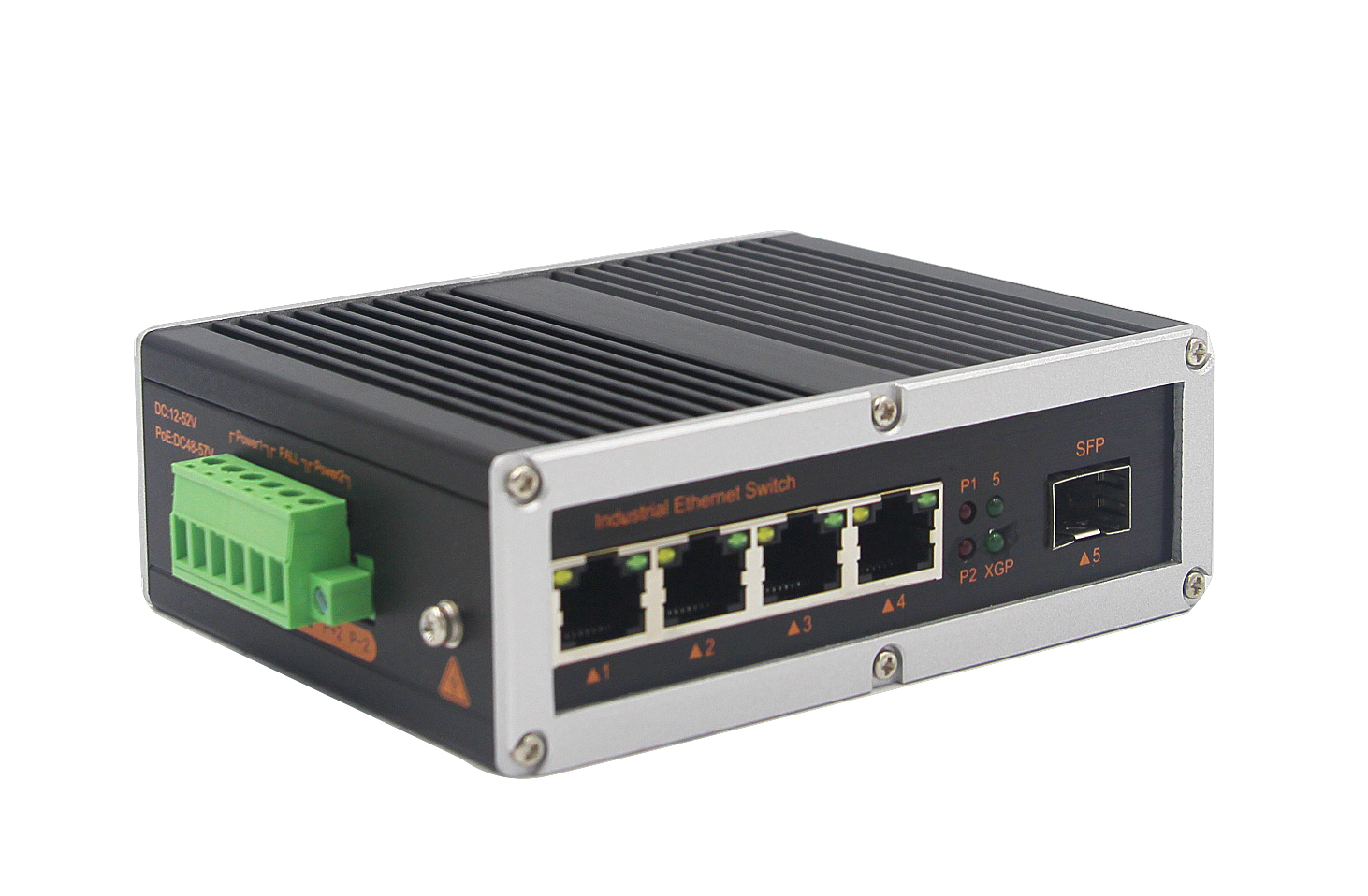 YH-XGP-14G-SFP 1個千兆光+4個千兆電、SFP接口(不含光模塊)、導軌式、DC12-52V供電