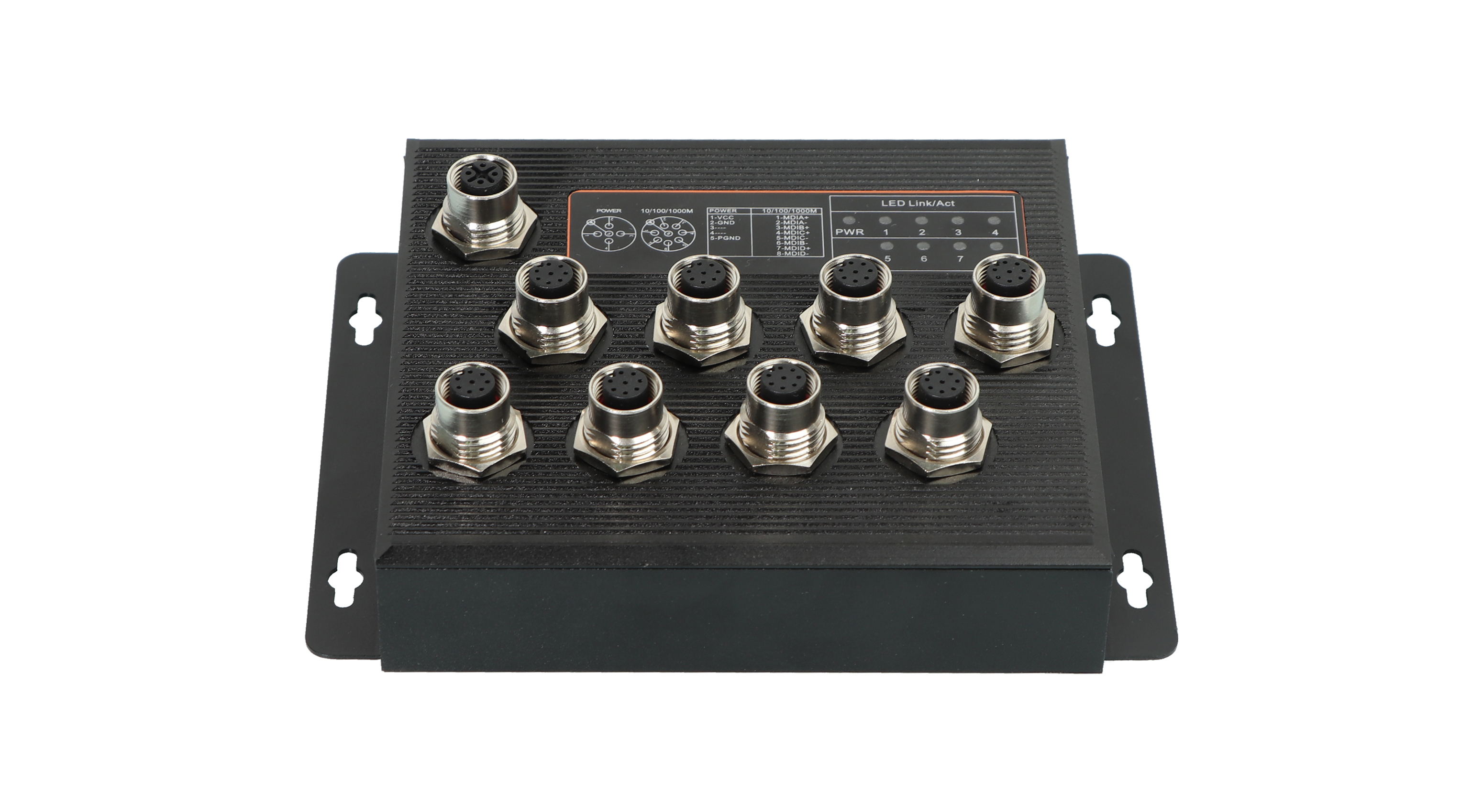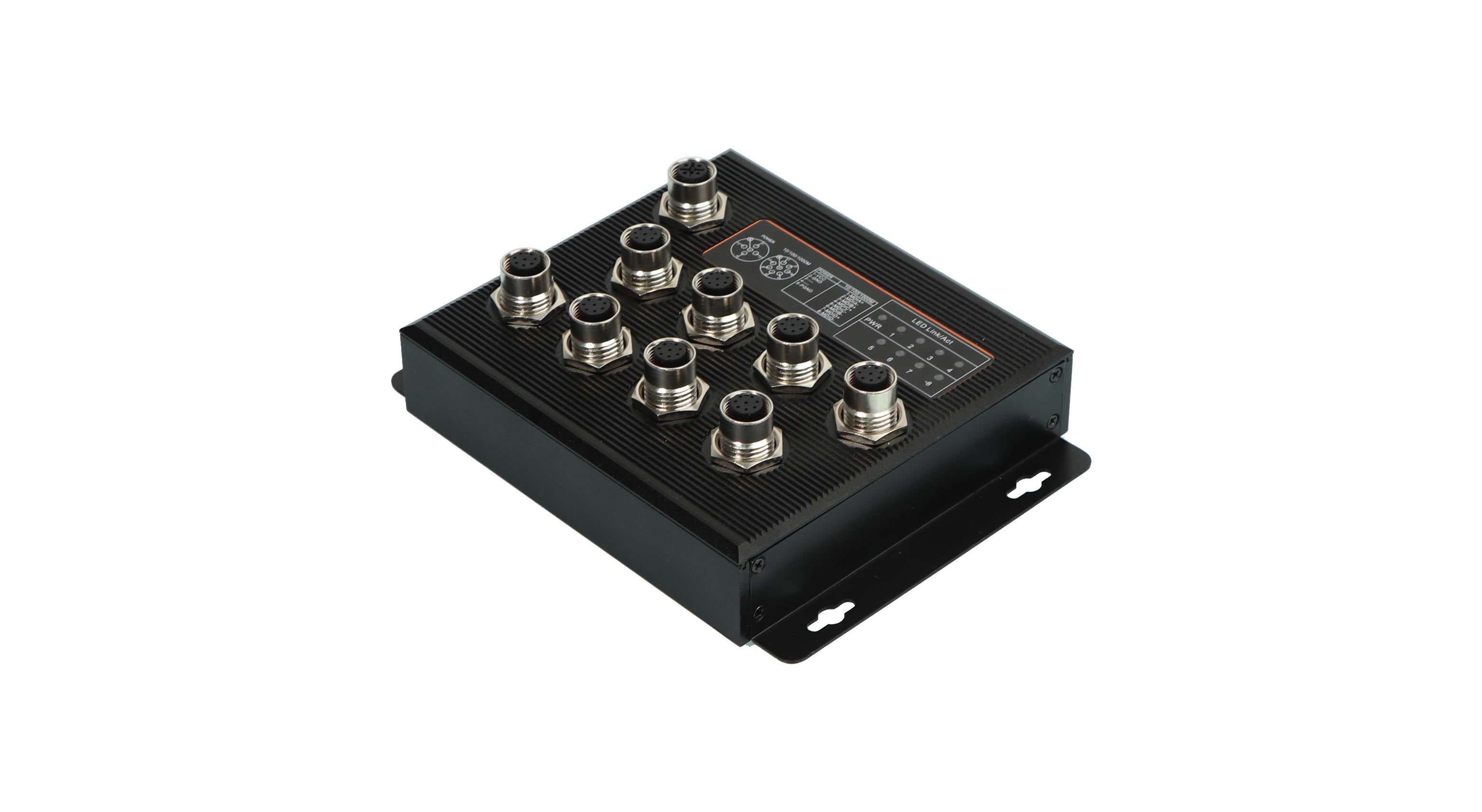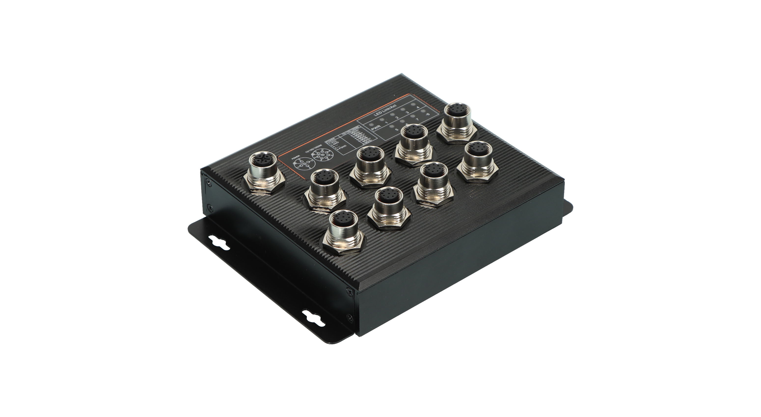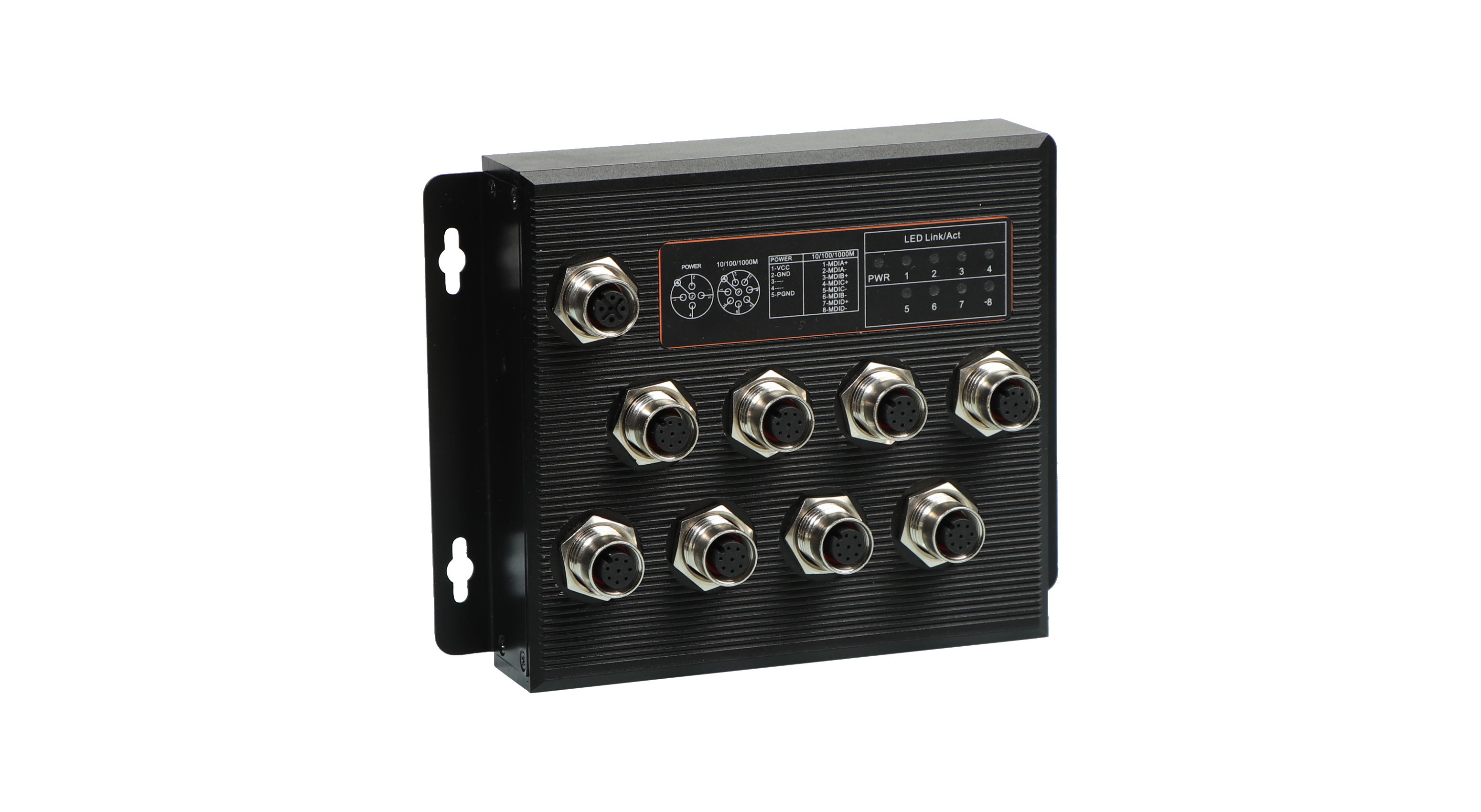 首頁產品系列行業標準&渠道增值產品鋁合金系列鋁合金M12電口車載工業交換機千兆8電M12交換機