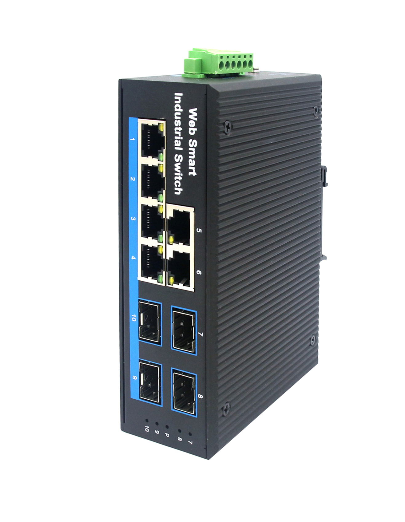 4個千兆光+6個千兆電、SFP接口(不含光模塊)、導軌式、DC12-52V供電-寬溫(-40℃-85℃)