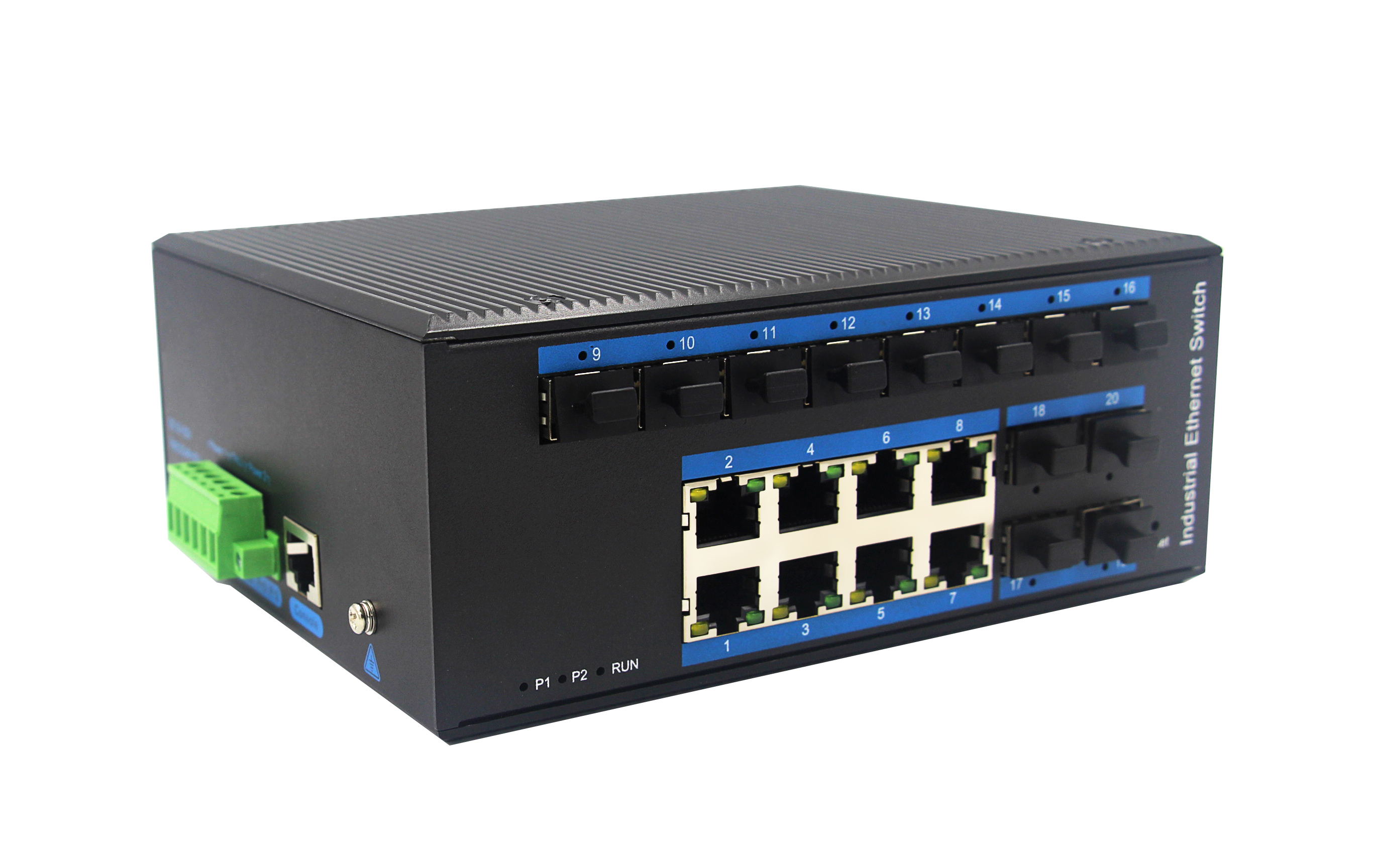 12個(gè)千兆光+8個(gè)千兆自適應(yīng)電口、SFP接口、DC12-52V供電-寬溫(-40℃-85℃) |