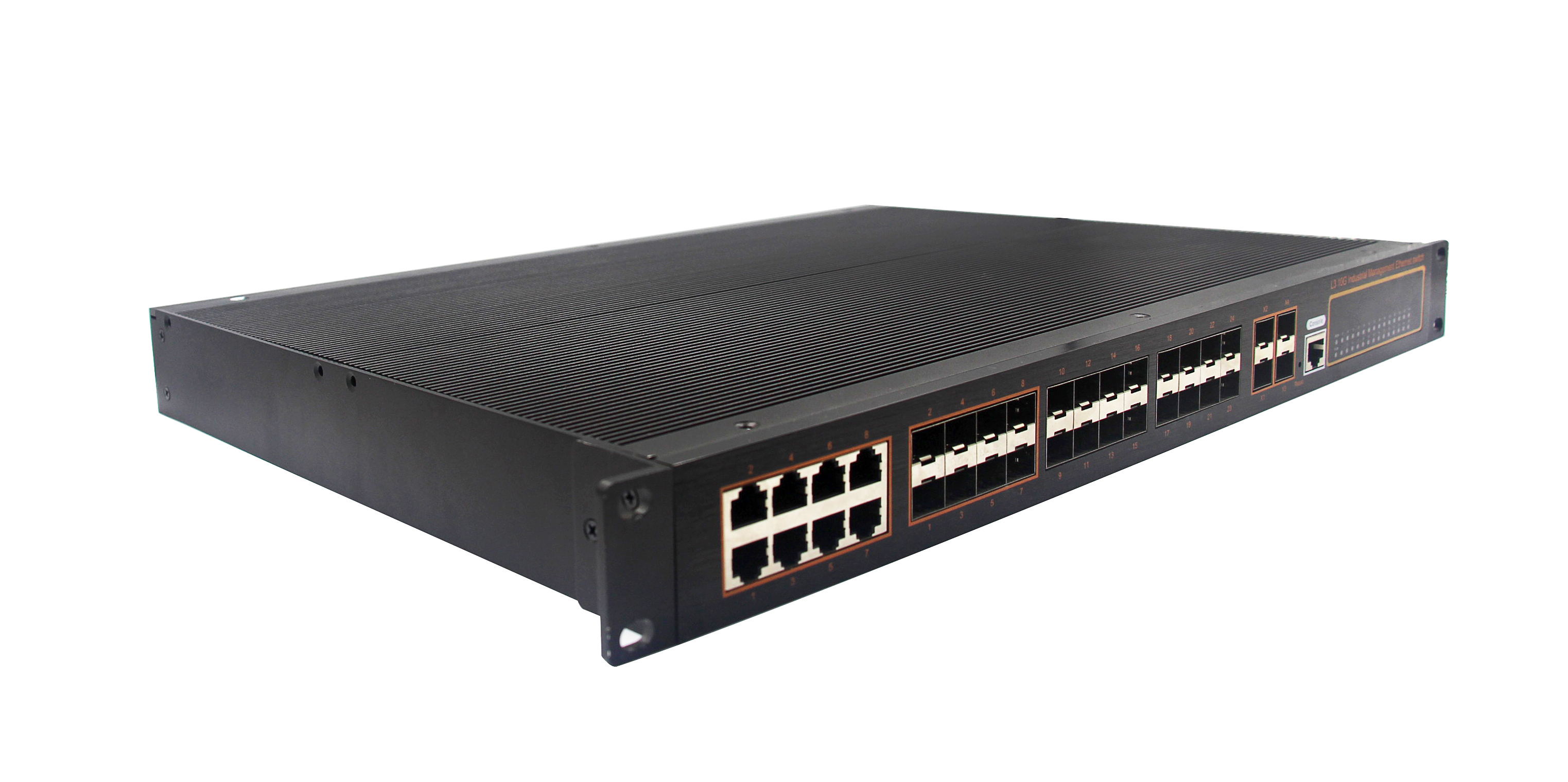 24千兆光+8千兆電+4個萬兆SFP+ 萬兆網管型機架式工業匯聚交換機