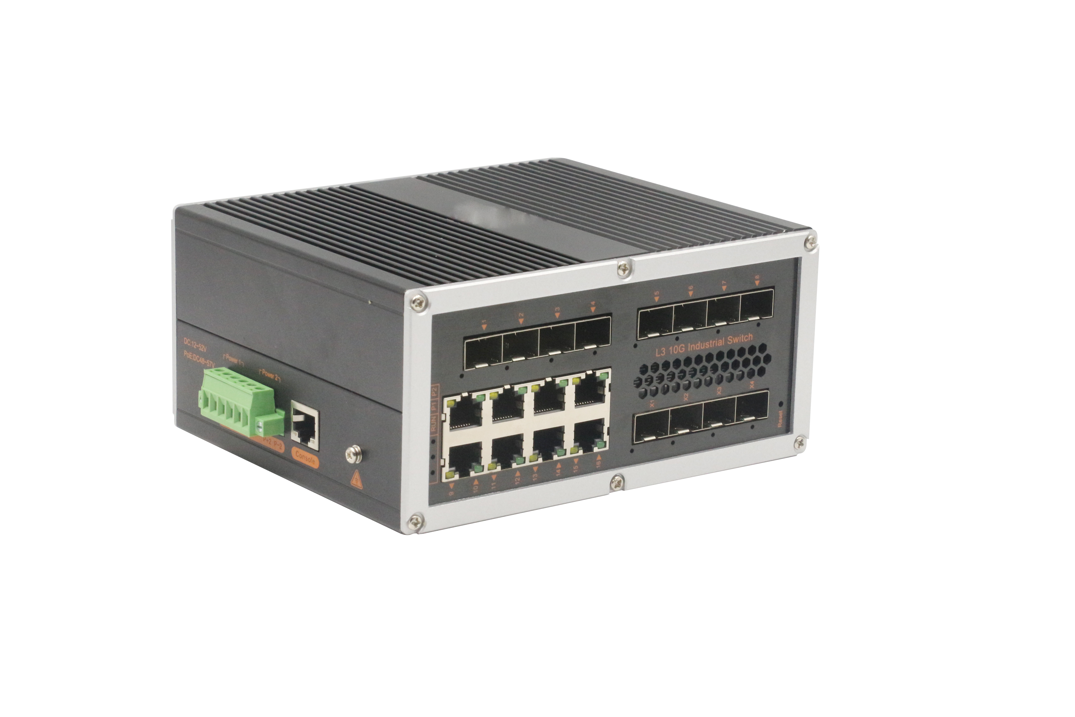 首頁產品系列行業標準&渠道增值產品鋁合金系列導軌式鋁合金三層管理型工業交換機三層網管4萬兆光8千兆光8千兆電SFP工業級交換機