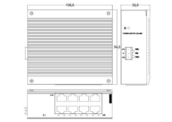 外殼:金屬材質(zhì) 安裝:DIN 卡軌式,壁掛式安裝 重量:0.25Kg 尺寸 :106.8 x 94.5 x 36.9mm(長(zhǎng) x 寬 x 高) |