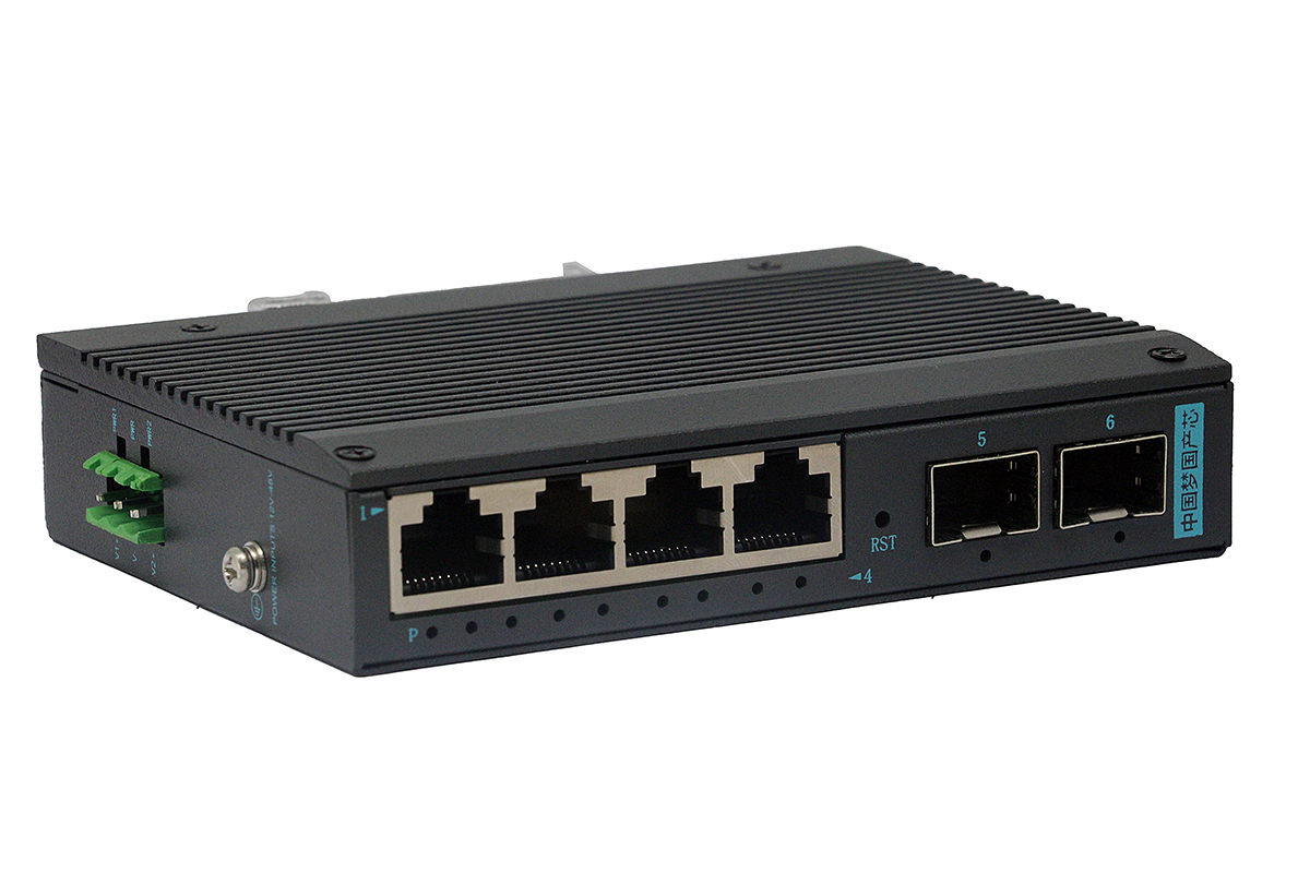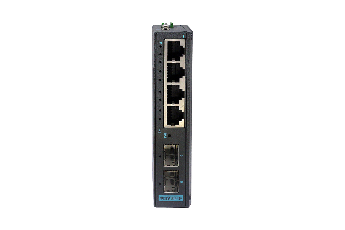 國產化工業級2個千兆光+4個千兆電、SFP接口(不含光模塊)、導軌式、DC12-48V供電-寬溫(-40℃-75℃)-支持環網(ERPS)-支持VLan-WEB管理