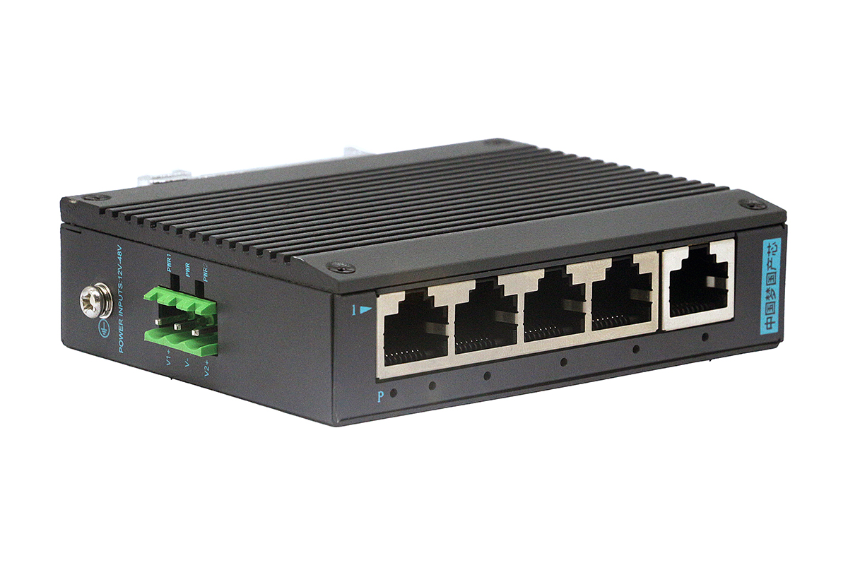 國產化工業級,非網管百兆5口以太網交換機、導軌式、DC12-48V供電-寬溫(-40℃-75℃)