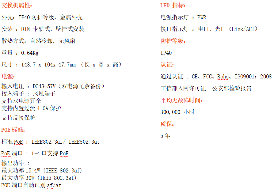 4路千兆POE電口+2路千兆FX光口工業級以太網POE交換機,支持4個10/100/1000Base-TX電口和2個1000Base-X光口。產品符合FCC、CE、ROHS標準。RD24GP-SFP交換機具有-40℃~80℃的工作溫度,具有超強的堅固度能適應各種嚴苛環境,也可以非常方便的安置在空間緊湊的控制箱中。導軌的安裝特性、寬溫操作及擁有IP40防護等級的外殼及LED指示燈,使RD24GP-SFP成為一個即插即用的工業級設備,為用戶的以太網設備聯網提供可靠、便捷的解決方案。