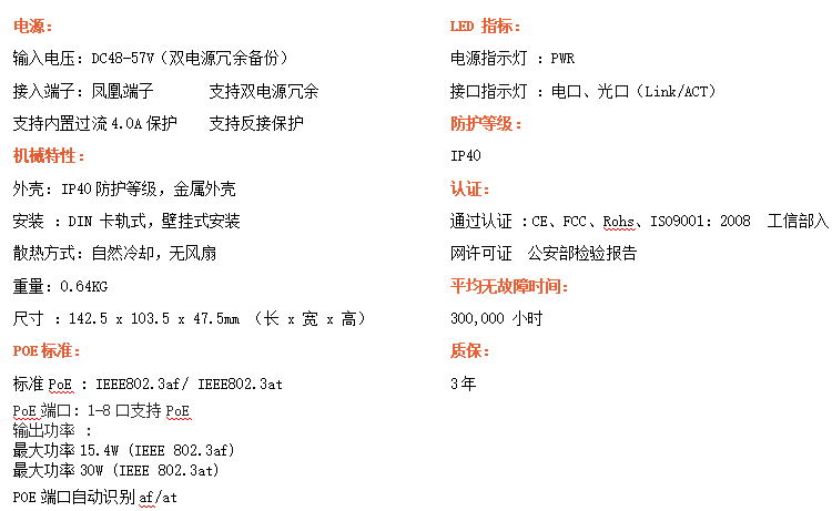 8路千兆POE電口+2路千兆FX光口工業級以太網POE交換機,支持8個10/100/1000Base-TX電口和2個1000Base-X光口。產品符合FCC、CE、ROHS標準。RDL28GP-SFP交換機具有-40℃~75℃的工作溫度,具有超強的堅固度能適應各種嚴苛環境,也可以非常方便的安置在空間緊湊的控制箱中。導軌的安裝特性、寬溫操作及擁有IP40防護等級的外殼及LED指示燈,使RDL28GP-SFP成為一個即插即用的工業級設備,為用戶的以太網設備聯網提供可靠、便捷的解決方案。