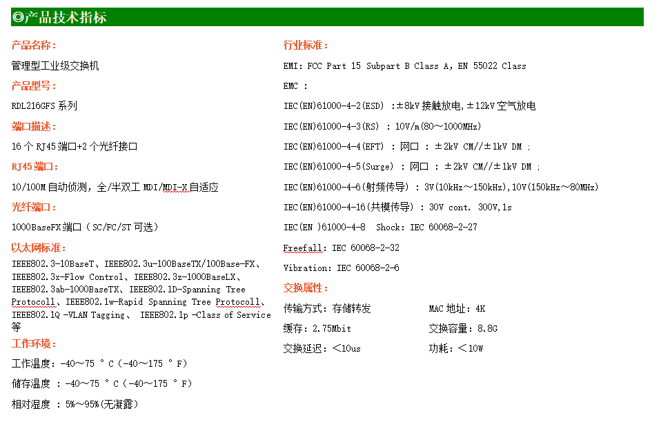RDL216GFS系列網管型工業以太網交換機,產品符合FCC、CE、ROHS標準。支持2個千兆光口和16個百兆電口,支持工業現場所需的以太網二層協議,保證通信網絡的穩定性;該系列交換機采用低功耗、無風扇設計,確保無噪聲干擾,同時支持-40~75℃工作溫度和良好的EMC電磁兼容性能,保證在惡劣的工業環境中保持穩定的工作,為工廠自動化,智能交通,視頻監控等工業應用領域組建快速穩定的網絡終端接入網絡提供安全可靠的解決方案。