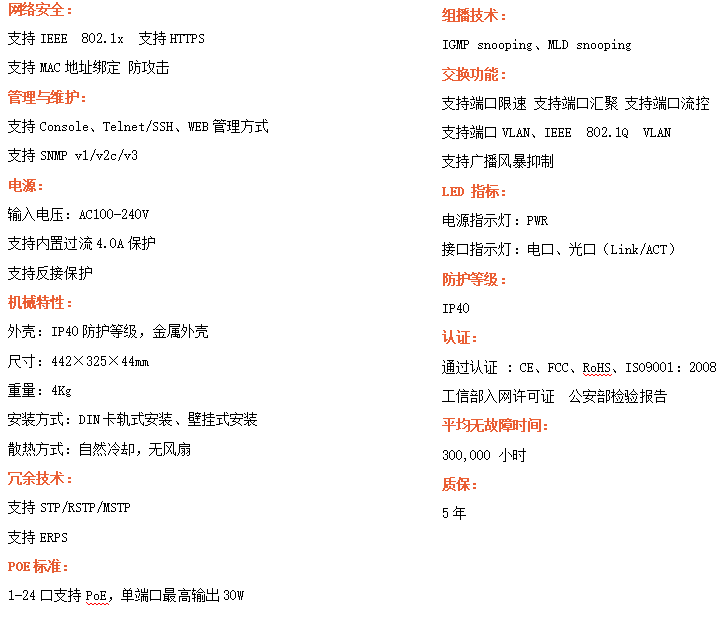 ●管理功能:支持WEB、CLI、SNMP管理方式