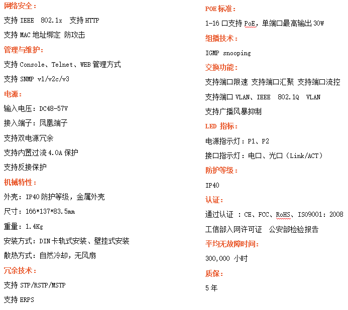 ●安全管理:支持ACL訪問控制列表,支持802.1X
