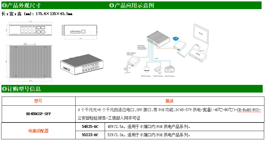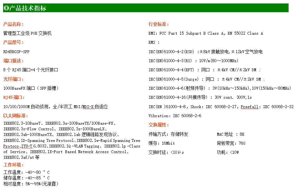 RD48BGSP-SFP是款高性能網管型工業以太網POE交換機,產品符合FCC、CE、ROHS標準。可通過快速以太網接口和光纖接口實現多種組合,最多可達12路接口,最多含4路千兆接口,增強了設計網絡和應用的靈活性。該系列交換機支持端口鏡像、VLAN、igmp、QoS、stp/Rstp等豐富的二層軟件特性及一系列實用的管理方式,更好的為工廠自動化,智能交通,視頻監控等工業應用領域組建快速穩定的遠程終端接入網絡提供安全可靠的解決方案