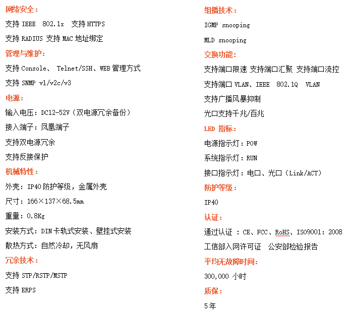 ●支持STP/RSTP/ERPS,SNMPv1/v2/v3,確保網絡安全