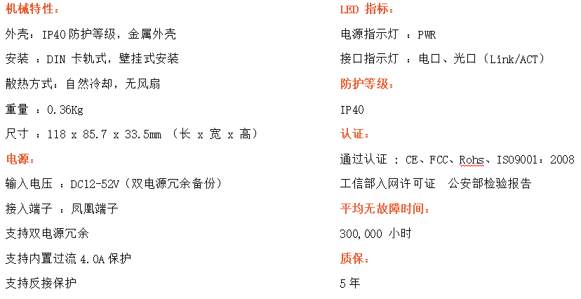 2路百兆電口+1路百兆FX光口工業級以太網交換機,支持2個10Base-T/100Base-TX電口和1個100Base-X光口。產品符合FCC、CE、ROHS標準。RD12F系列交換機具有-40℃~80℃的工作溫度,具有超強的堅固度能適應各種嚴苛環境,也可以非常方便的安置在空間緊湊的控制箱中。導軌的安裝特性、寬溫操作及擁有IP40防護等級的外殼及LED指示燈,使RD12F成為一個即插即用的工業級設備,為用戶的以太網設備聯網提供可靠、便捷的解決方案。