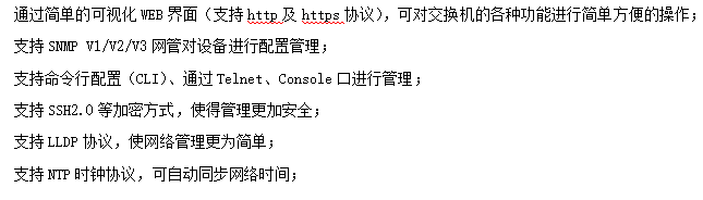 ●管理功能:支持WEB、CLI、SNMP等多種管理方式