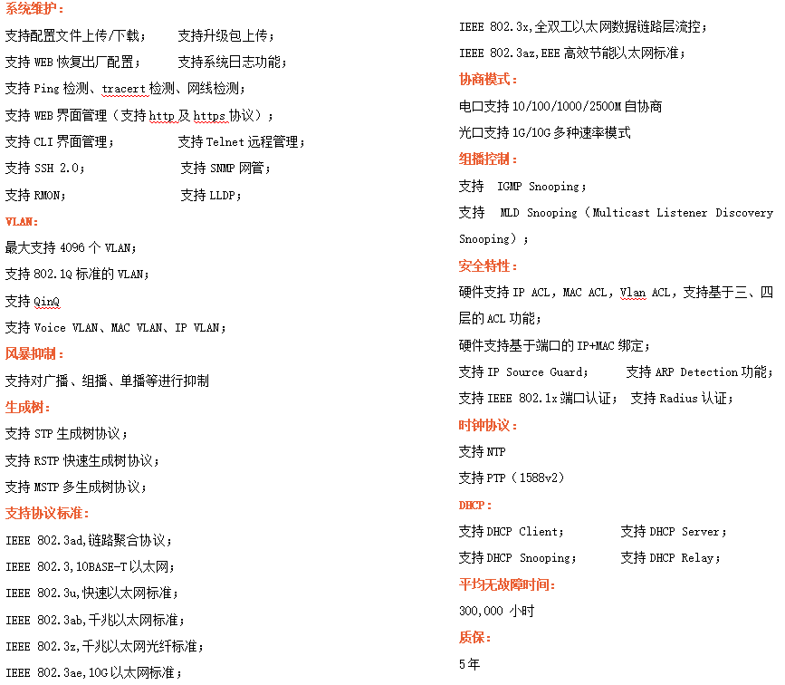 ●VLAN:支持802.1Q VLAN、QinQ、Voice VLAN、MAC VLAN、IP VLAN